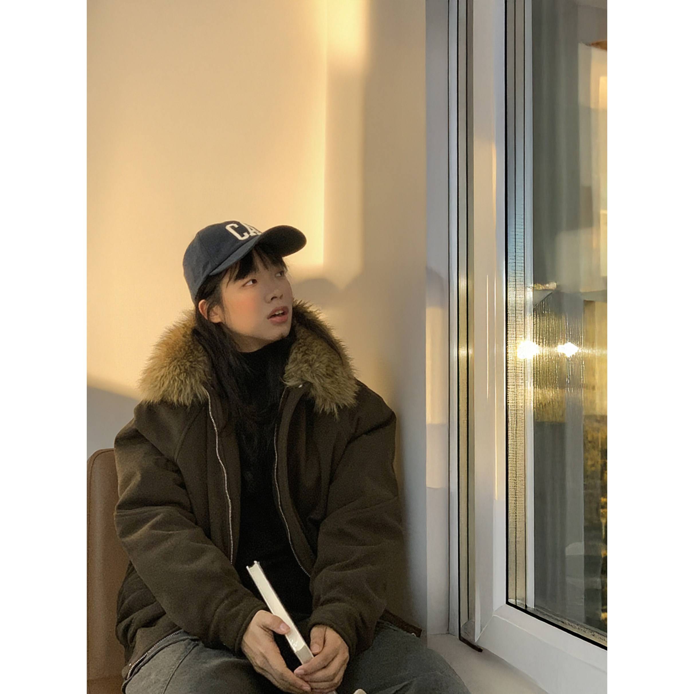 工装 派克服宽松加厚短款 外套棉衣 复古座山雕毛领棉服男女冬季 美式