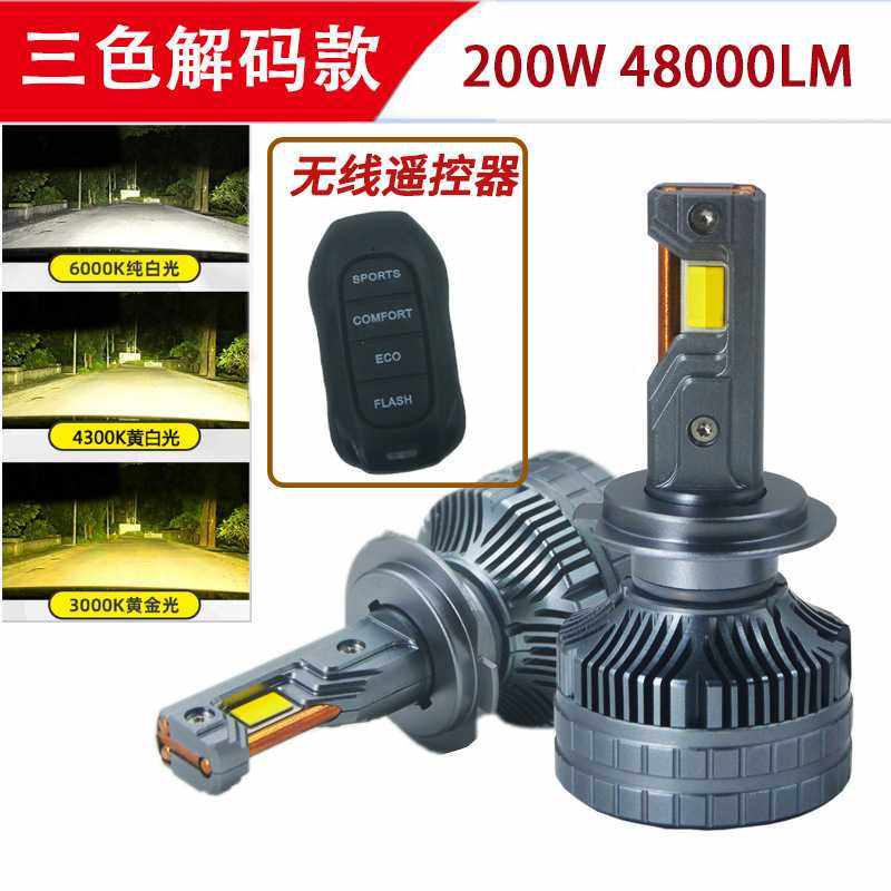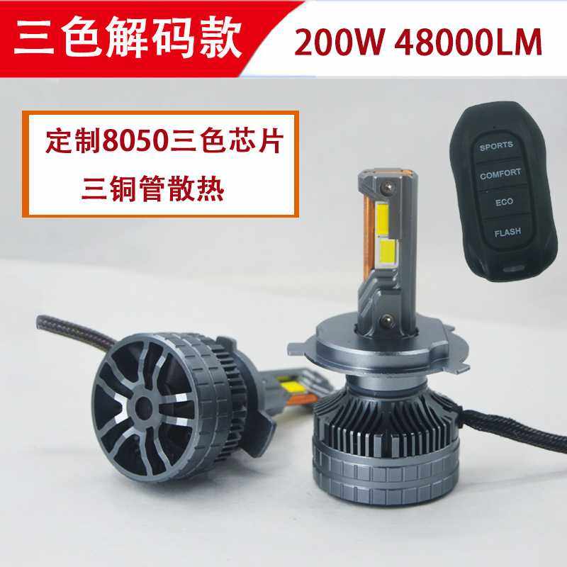 三铜管三色款 车灯爆闪 汽车LED大灯200WH7H1H11H490059012遥控款