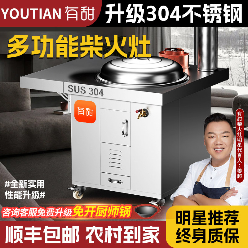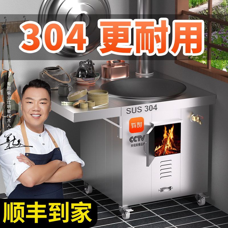 有甜304新款 柴火灶家用烧木柴大锅台农村不锈钢无烟移动土灶台
