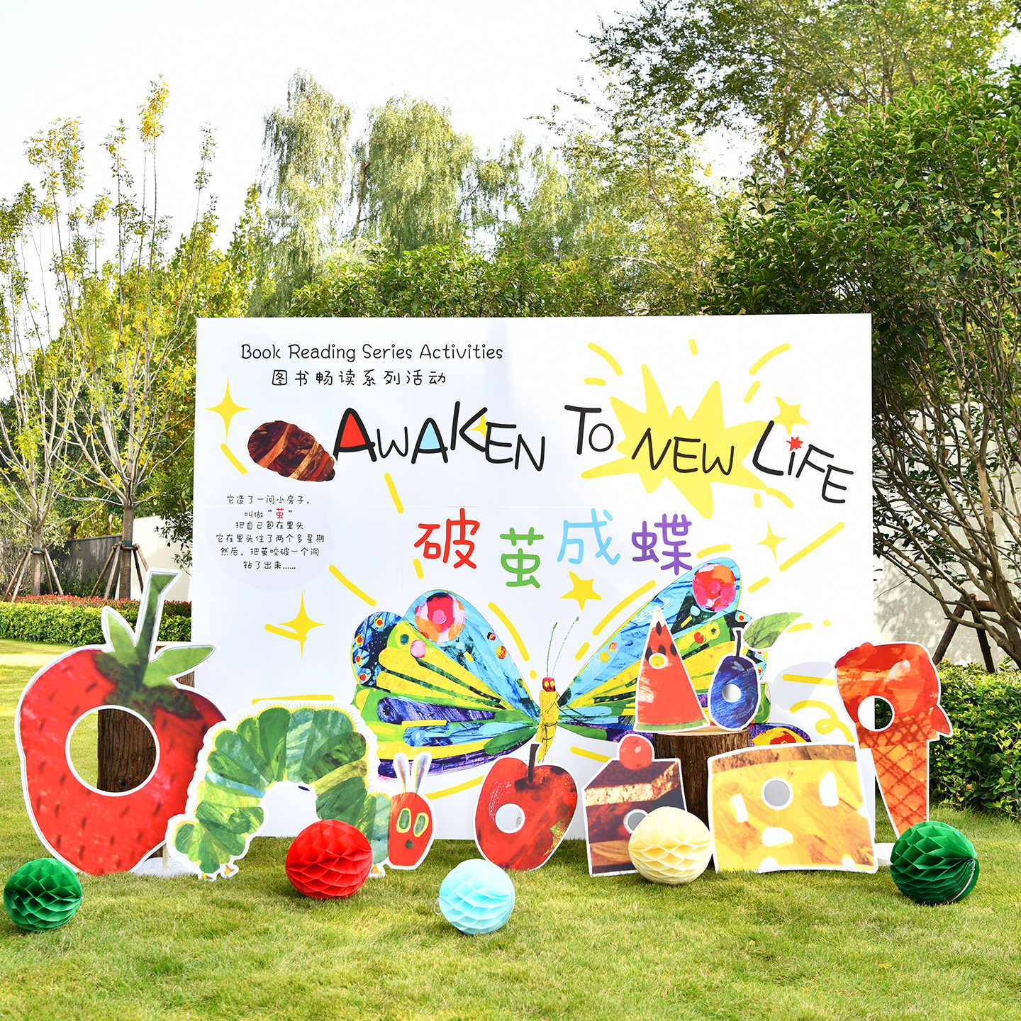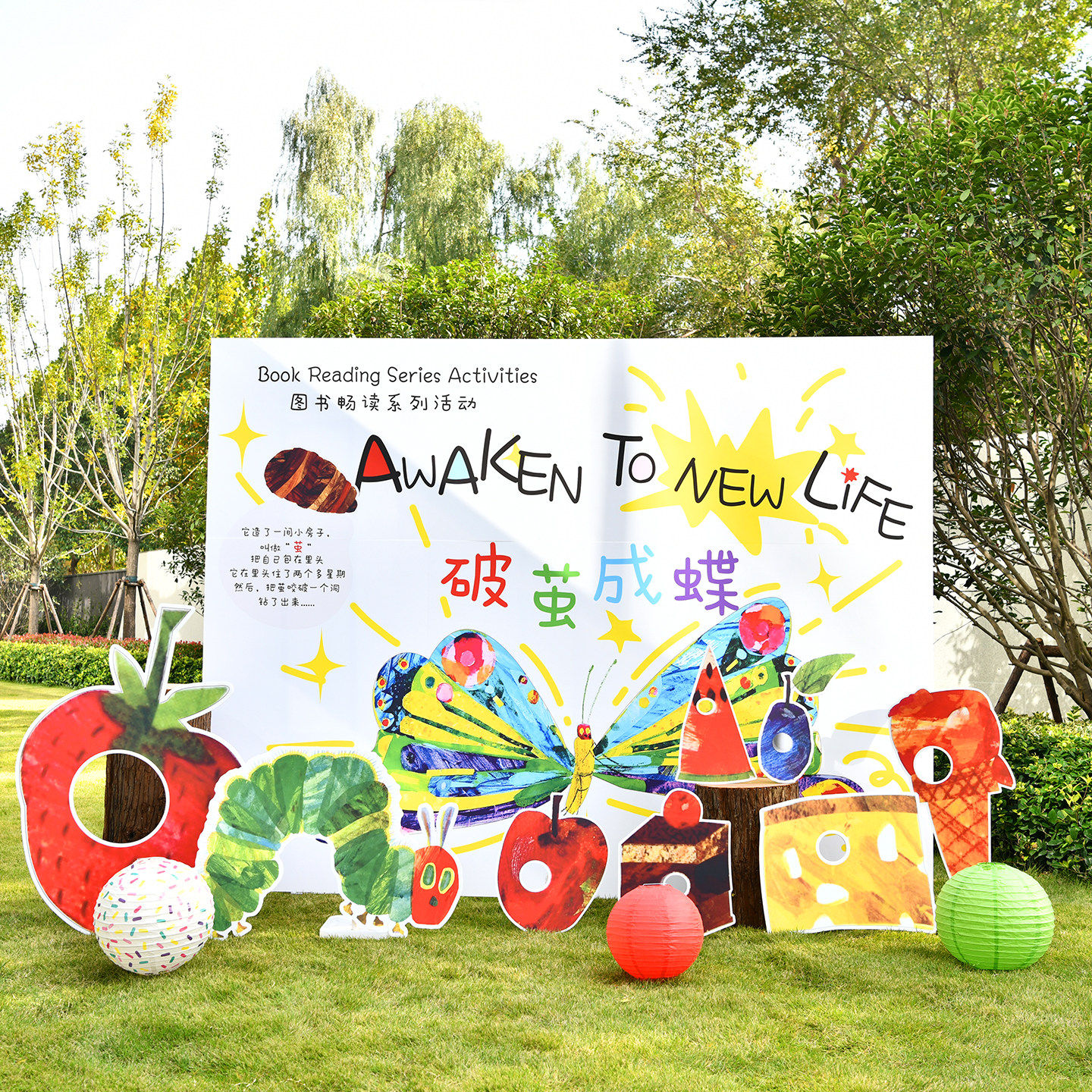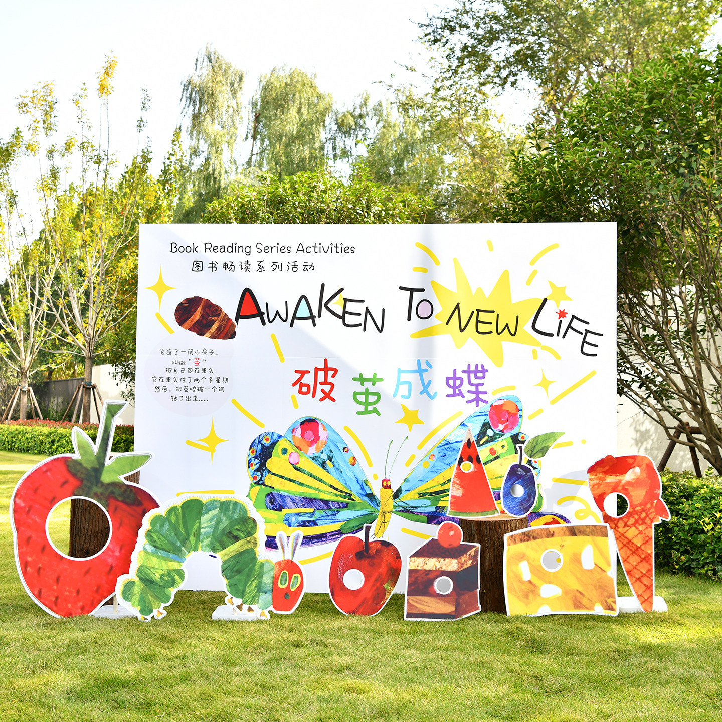 好饿 毛毛虫读书月布置KT板幼儿园学校亲子世界读书日绘本展板