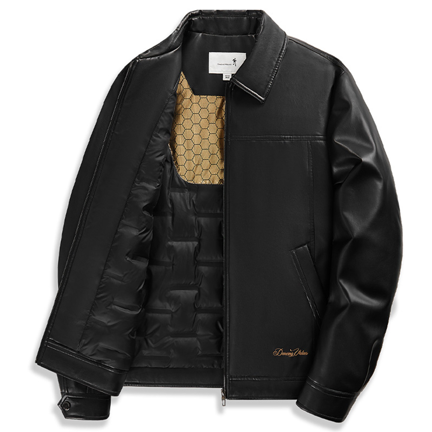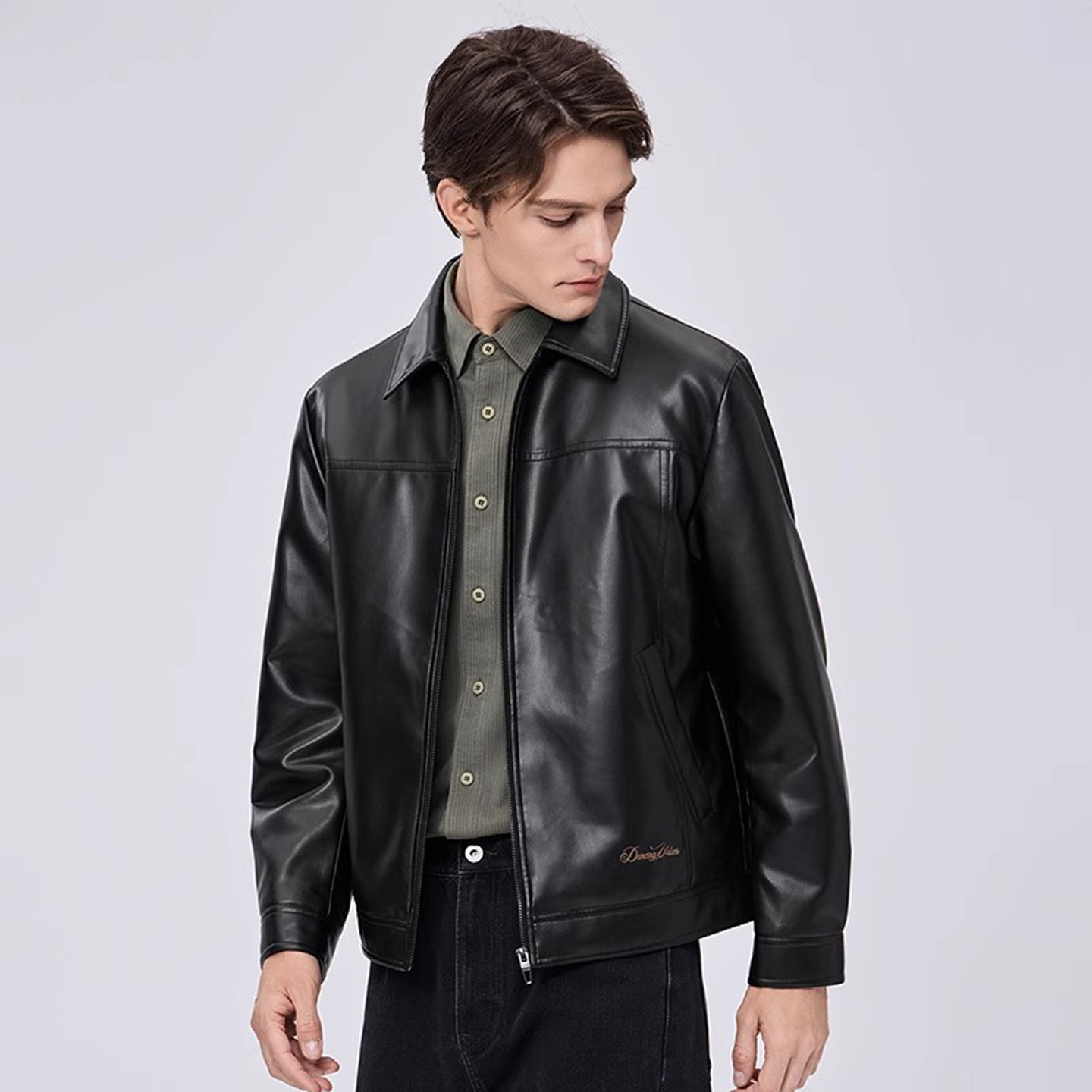 商务休闲防泼水外套 与狼共舞PU皮翻领皮衣男25秋冬新款 羽绒内胆