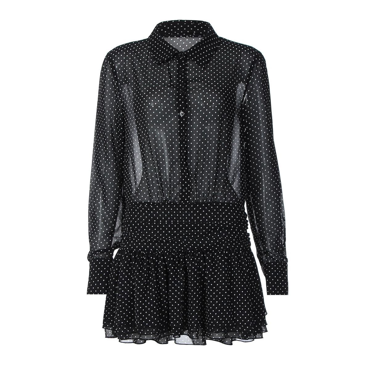 复古波点印花POLO领衬衫 辣妹修身 长袖 新款 短裙 连衣裙2026秋季 美式