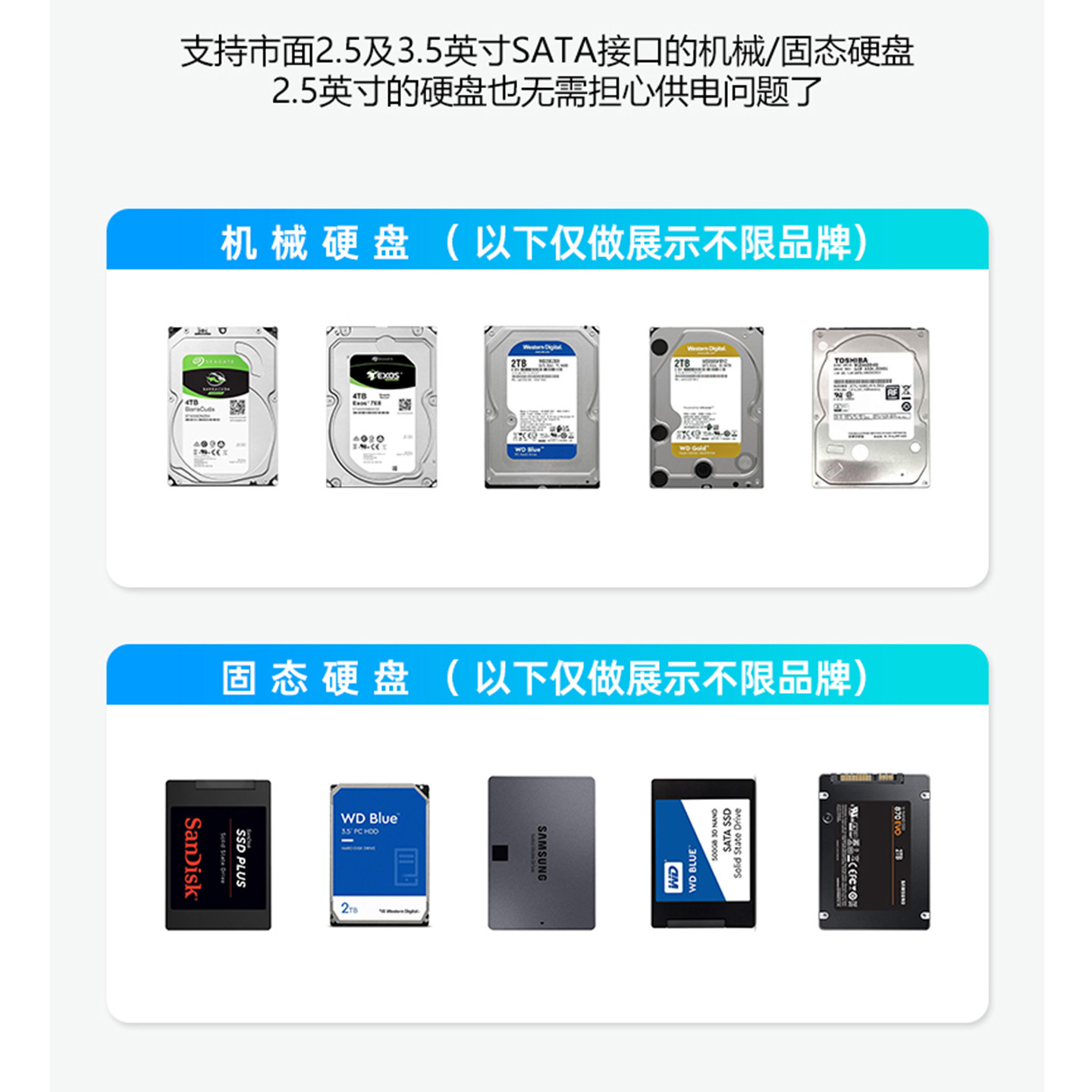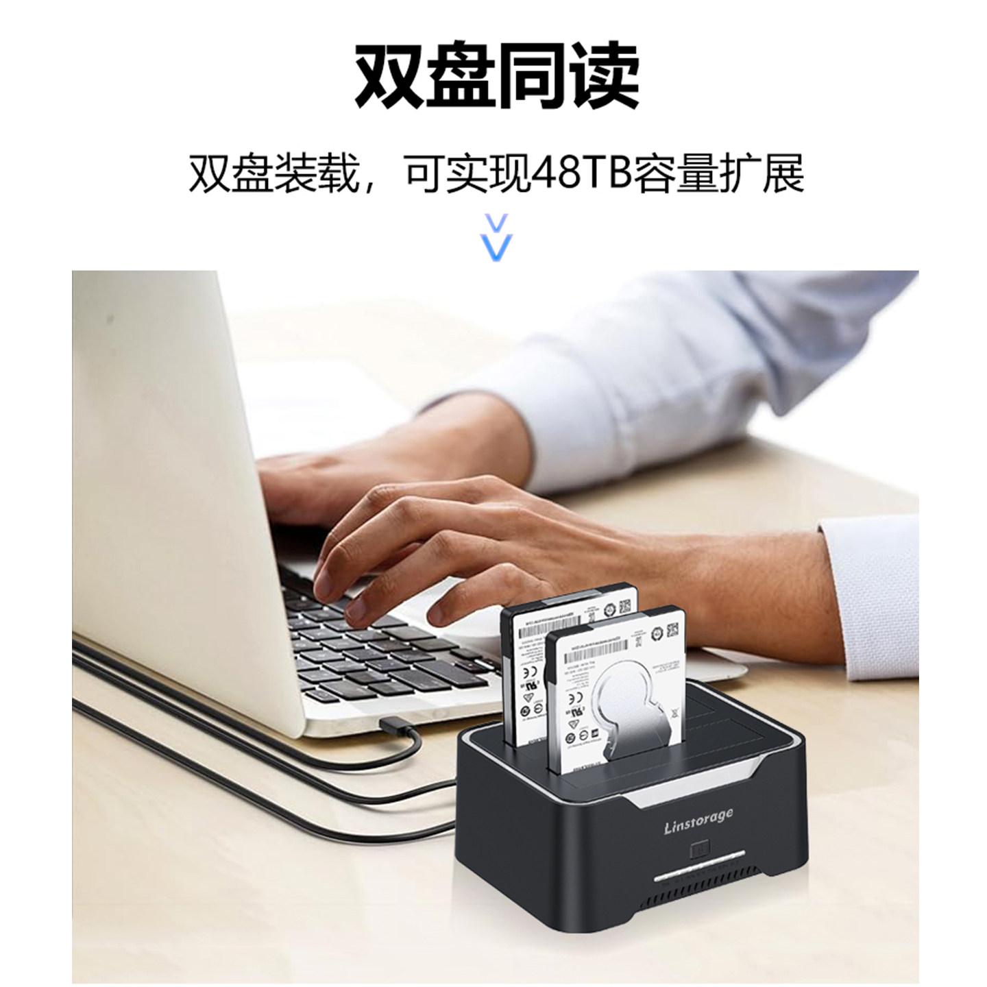 联存SATA硬盘对拷贝机2.5 底座 3.5英寸机械固态双盘位硬盘盒立式