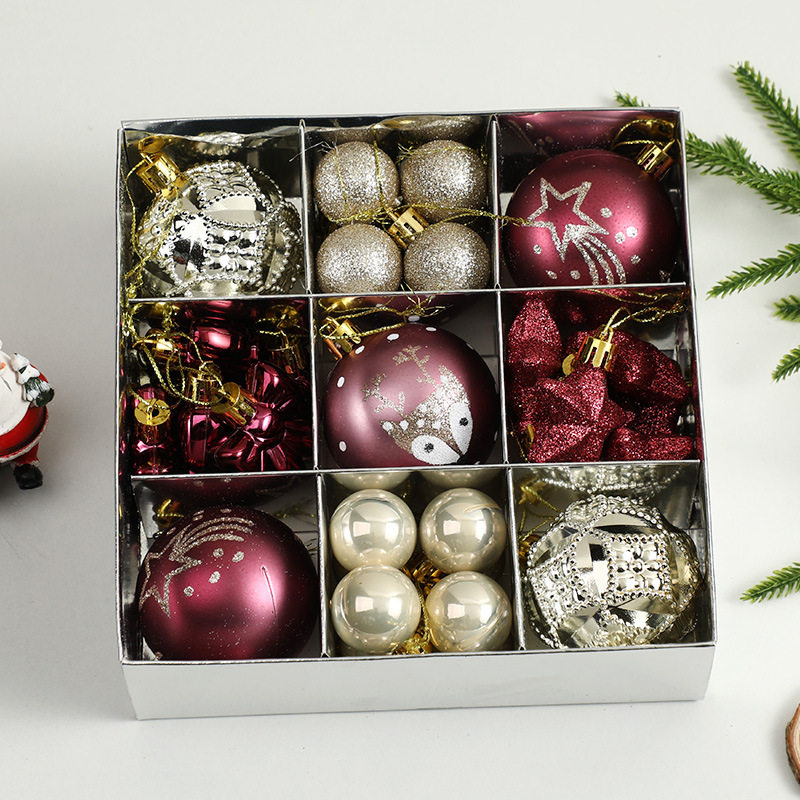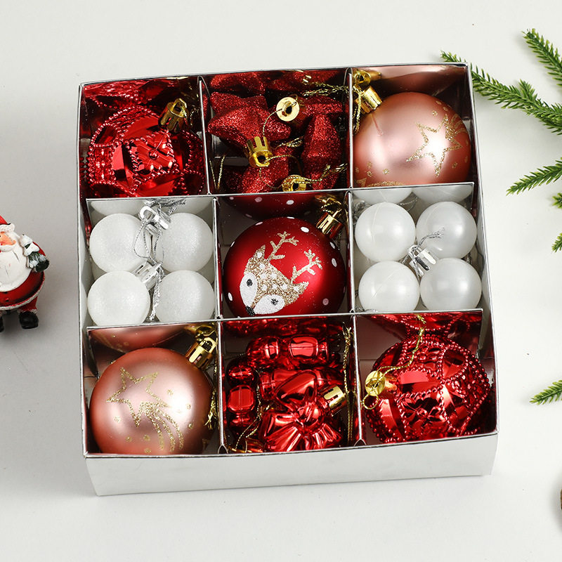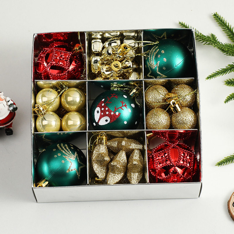 圣诞球35PCS套盒彩绘亮光球圣诞树彩球挂件圣诞节装 饰品礼盒