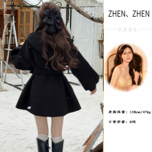 bule蓝色星球秋冬厚款 加厚夹棉圣诞红呢子大衣连帽设计感毛呢外套