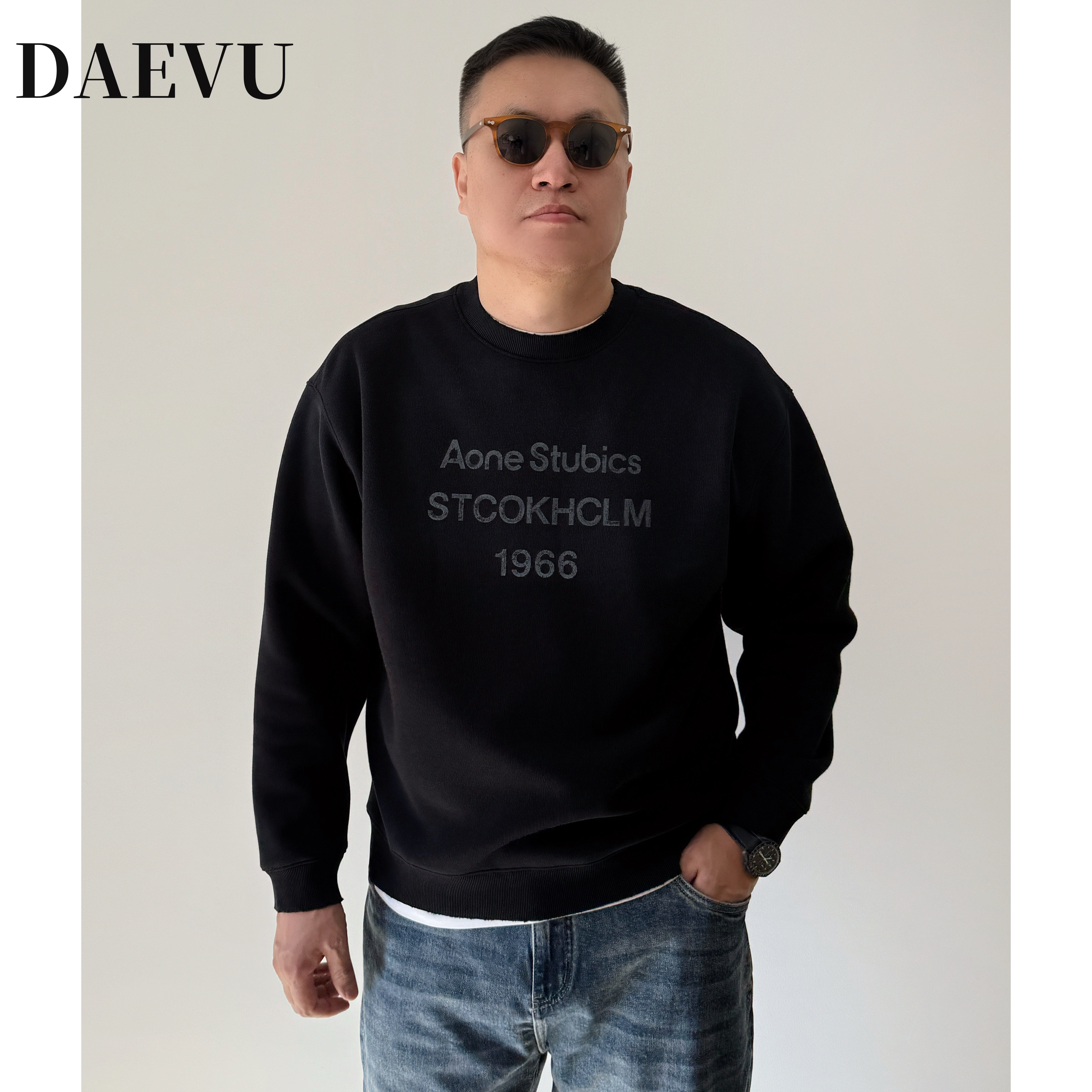 潮牌胖子套头长袖 大依无忧宽松廓形圆领大码 加绒卫衣男2025冬季