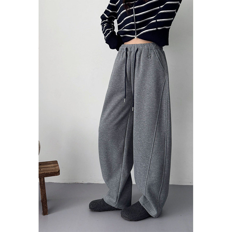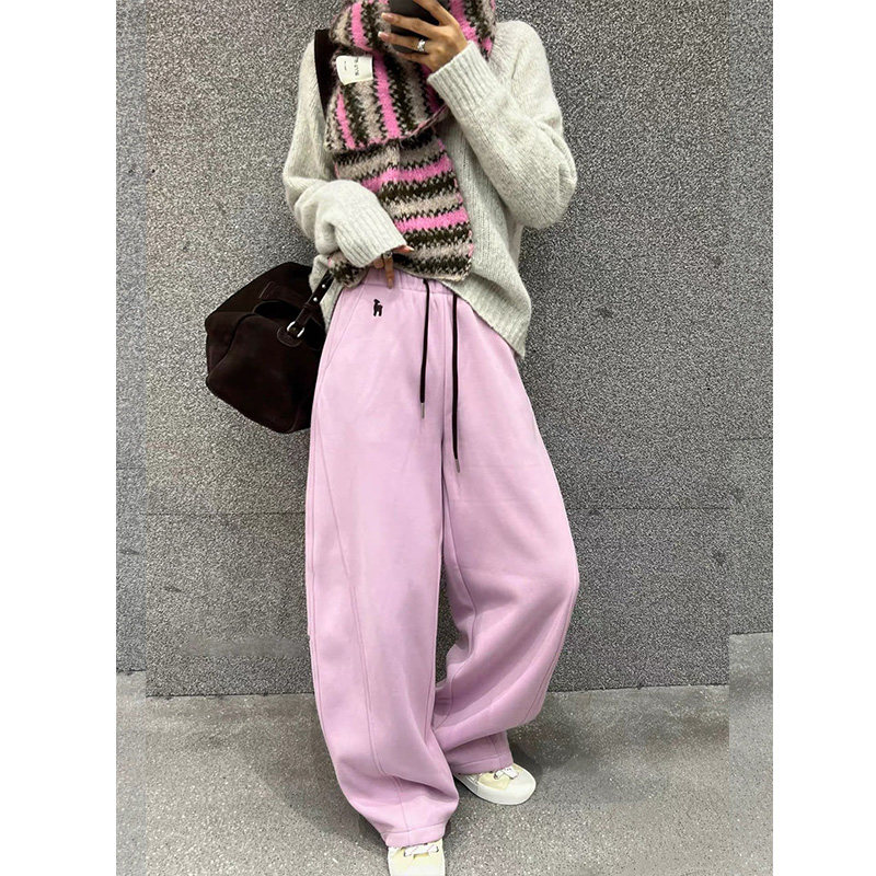 慵懒风加绒休闲裤 运动阔腿裤 高腰宽松垂感弯刀裤 新款 女2025冬季