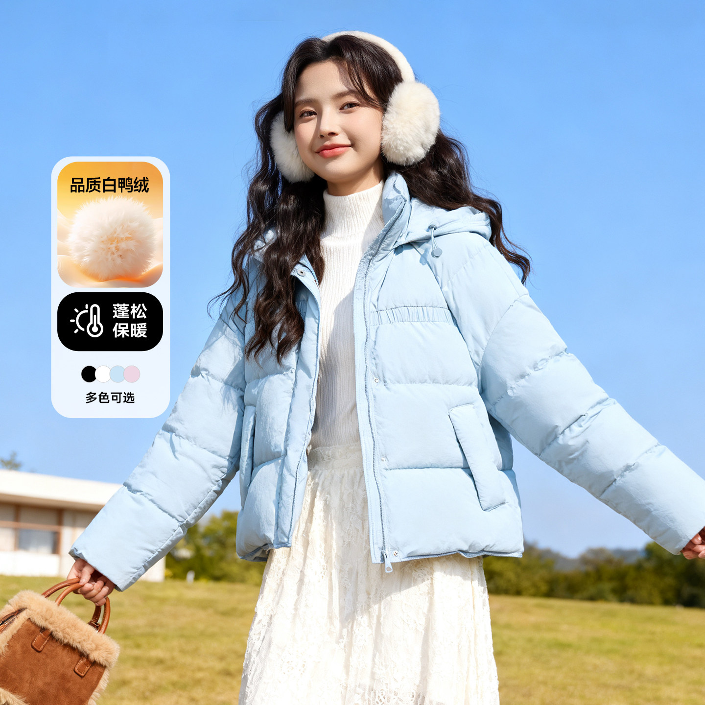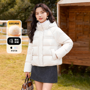 巨好看 新款 保暖外套上衣H 羽绒服女2026冬季 班尼路黑色连帽短款