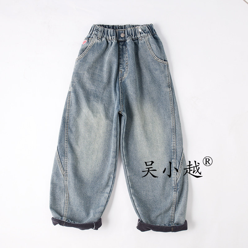 宝儿磨毛绒阔腿百搭保暖加厚长裤 新款 子 冬季 大耳象女童翻边牛仔裤