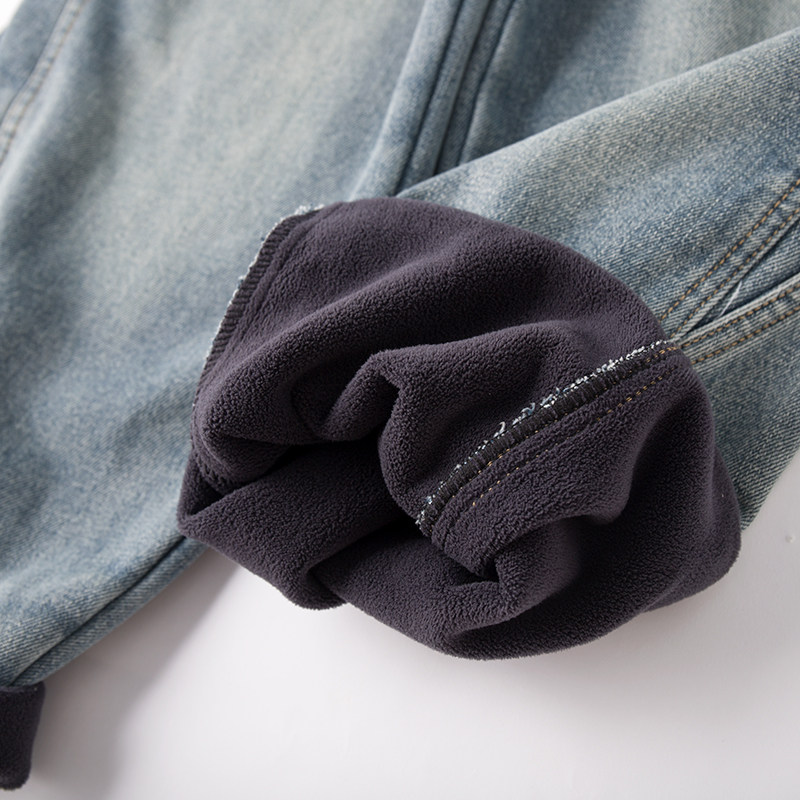 子学生冬裤 儿童男装 一体绒加绒保暖裤 男童牛仔裤 厚绒弹力 2025新款