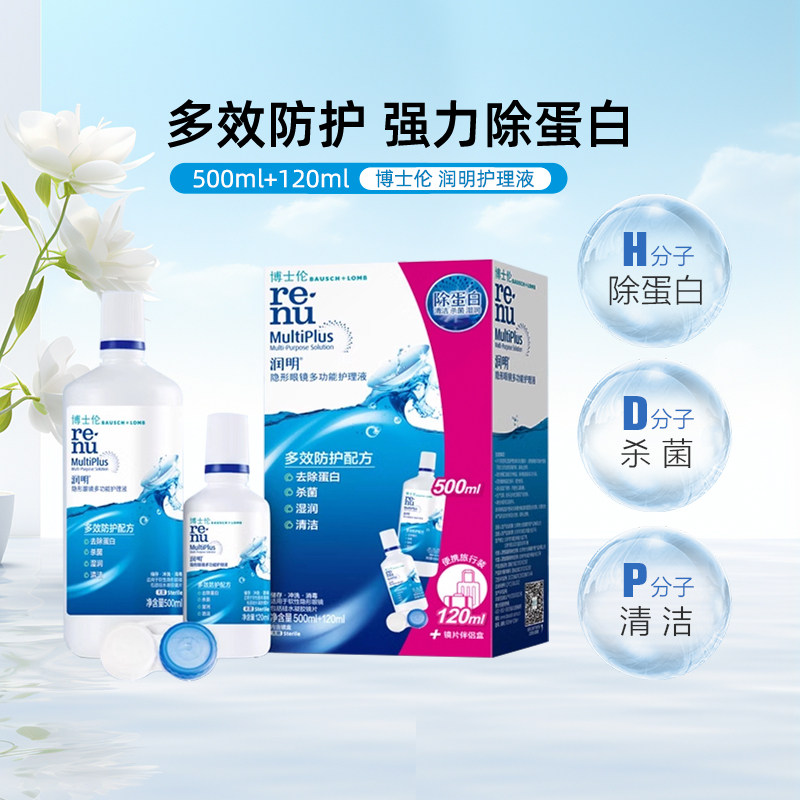 120ml隐形眼镜清洁除蛋白 美国博士伦润明清透护理液500 自营