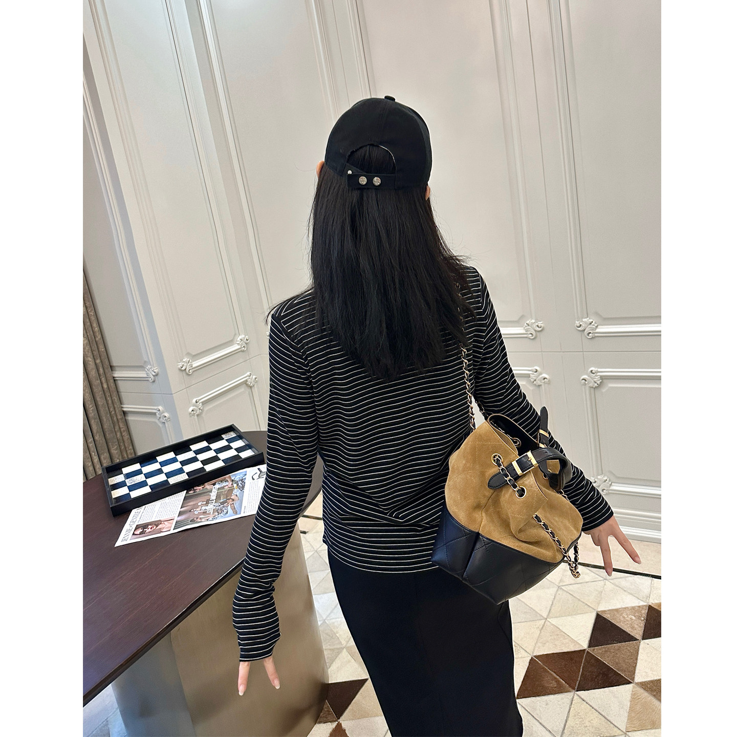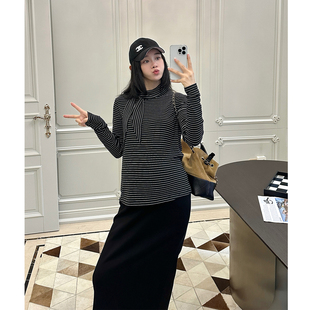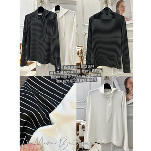 显瘦蝴蝶结飘带打底衫 LeoMami孕妇装 T恤修身 复古条纹长袖 秋冬法式