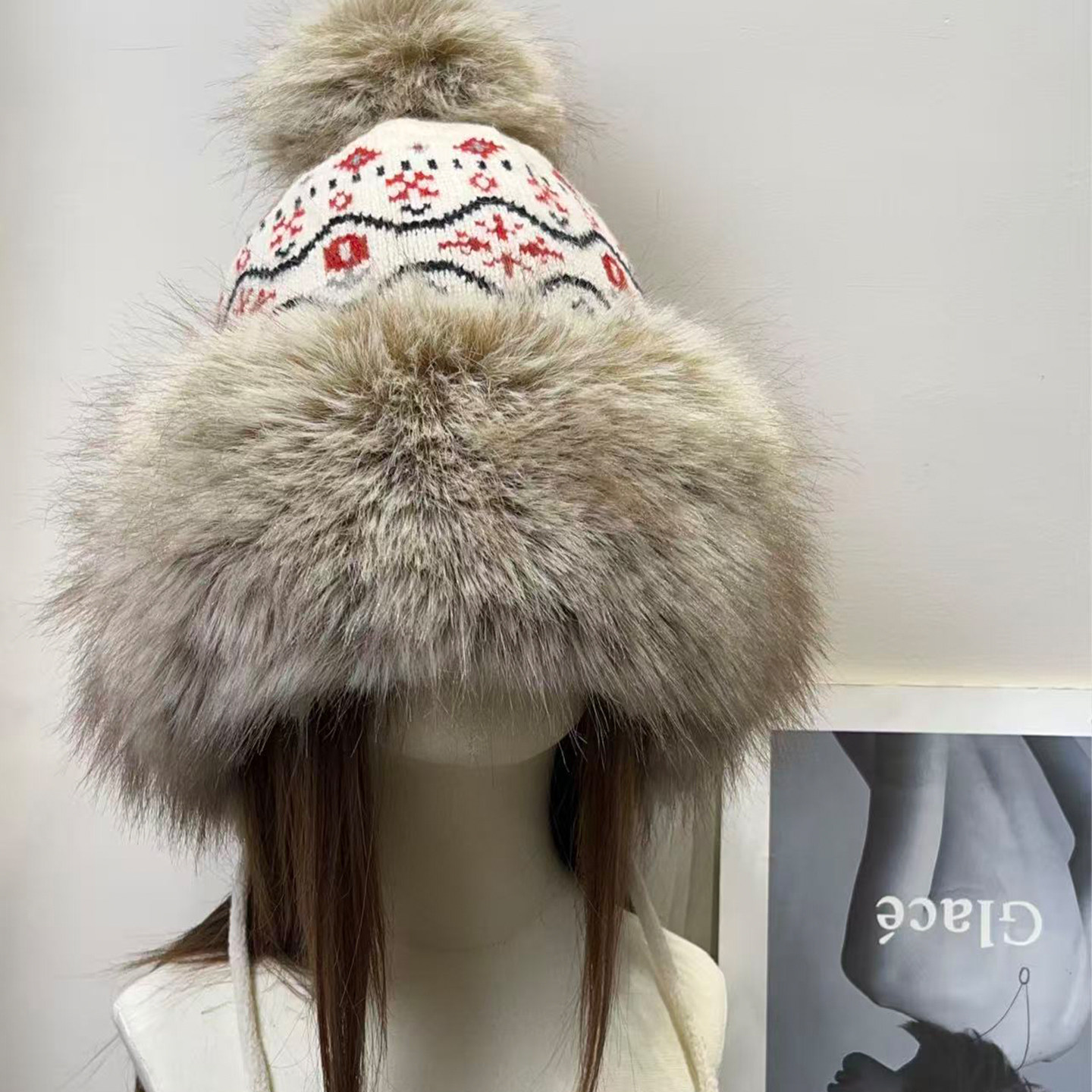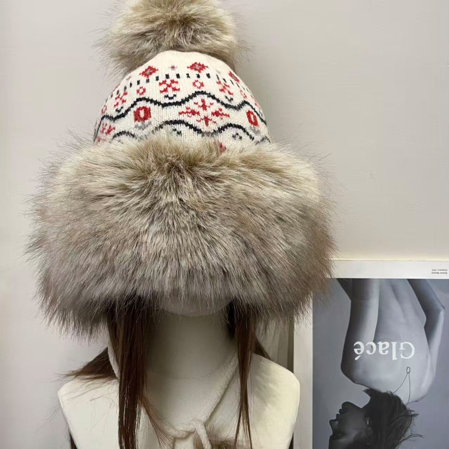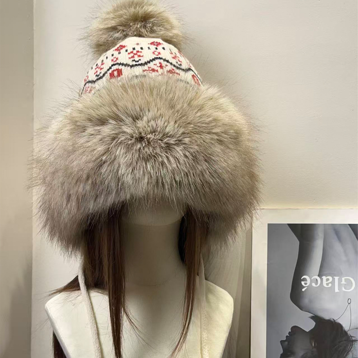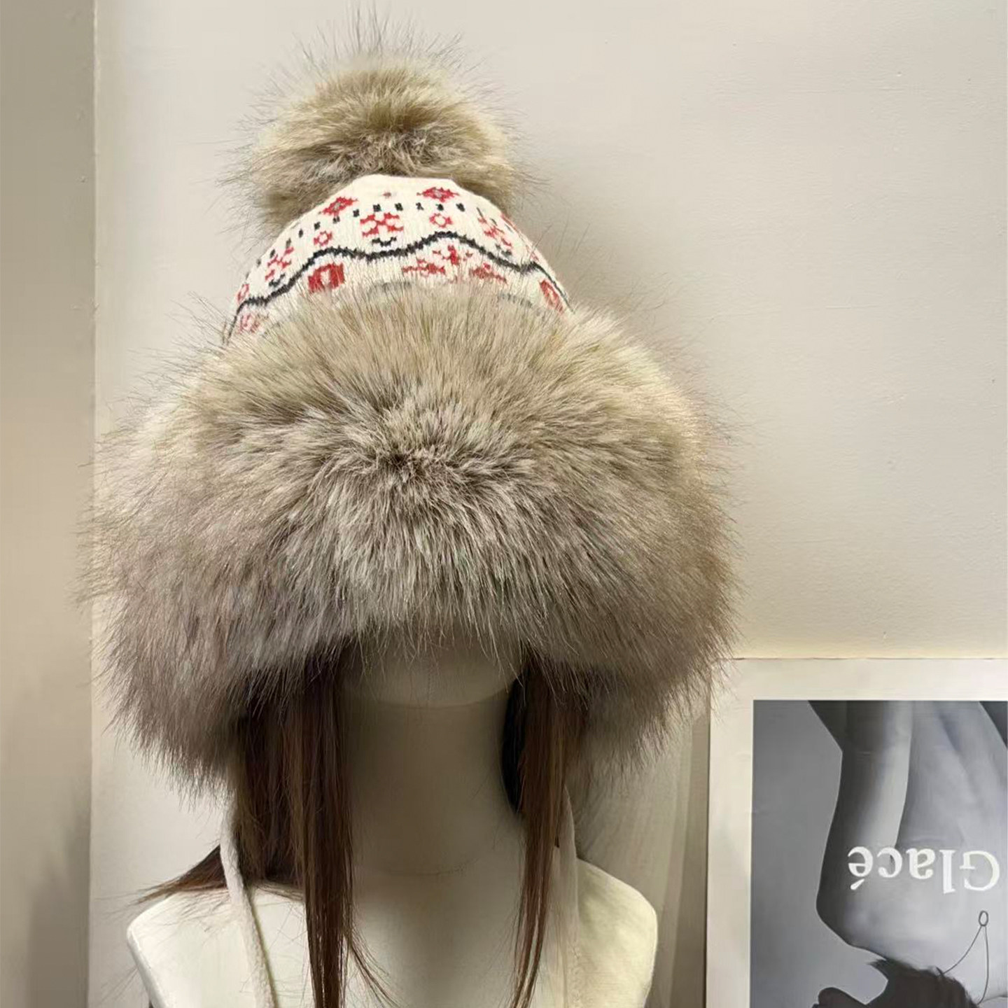 一体帽子女秋冬季 风雪帽加绒松鼠绒毛线帽保暖网红帽 加厚围巾新款