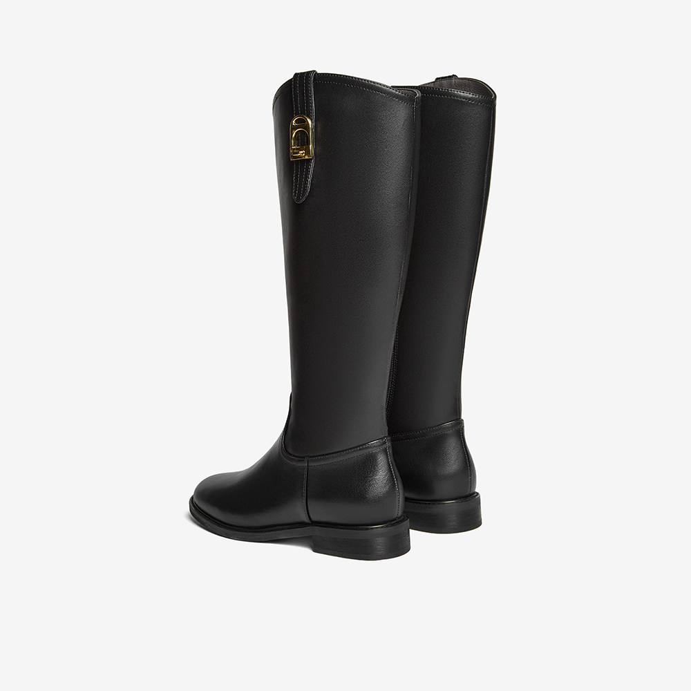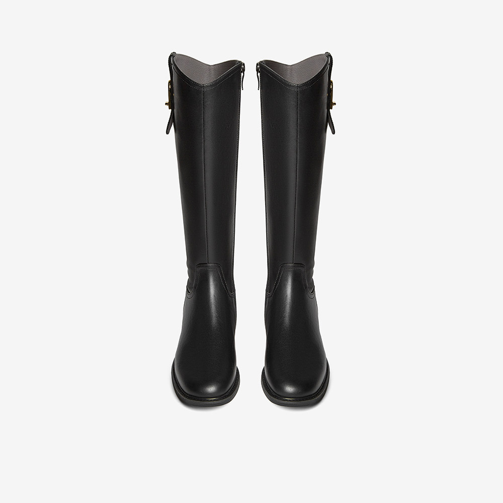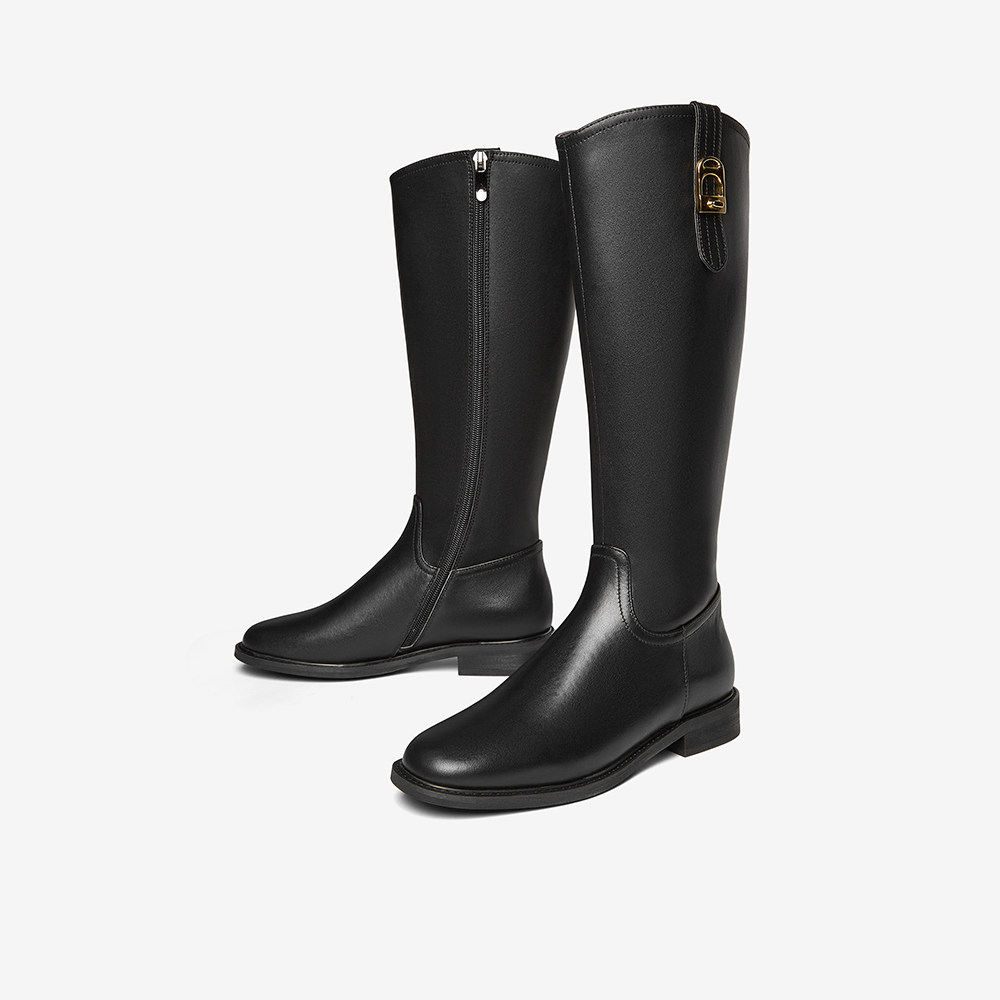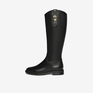 Fermina 显瘦长靴不过膝骑士靴女低跟长筒靴皮带扣机车靴高筒 秋季