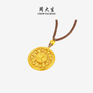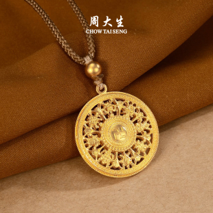周大生黄金吊坠女古法足金福字八宝罗盘项链挂坠送女朋友生日礼物