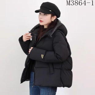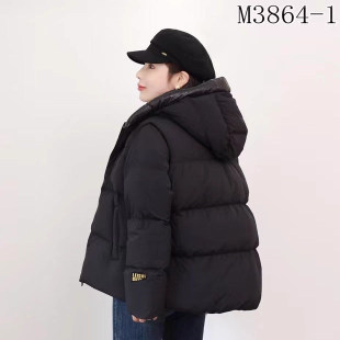 给力特 子可脱卸加厚白鸭绒面包服外套 黑金羽绒服保暖加厚连帽袖