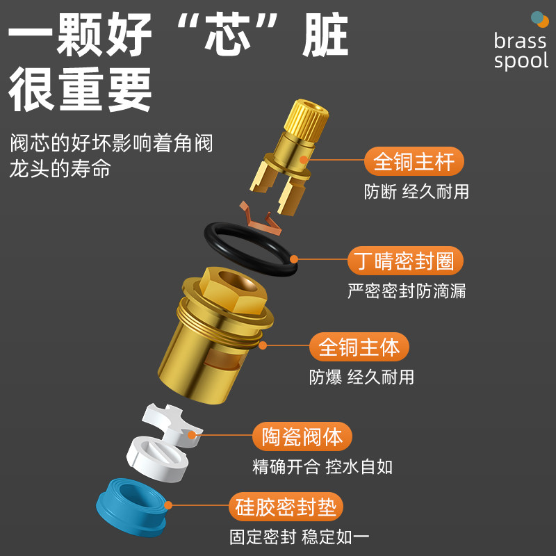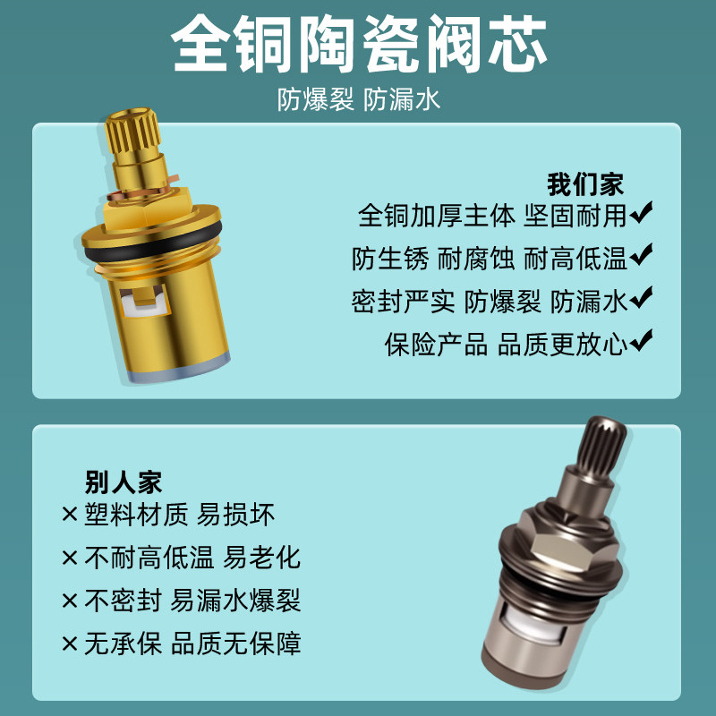全铜水龙头阀芯通用型单冷快开洗脸盆龙头三角阀开关阀修配件大全