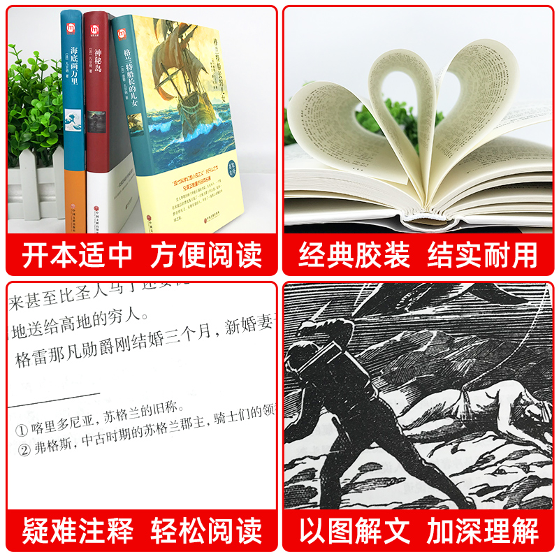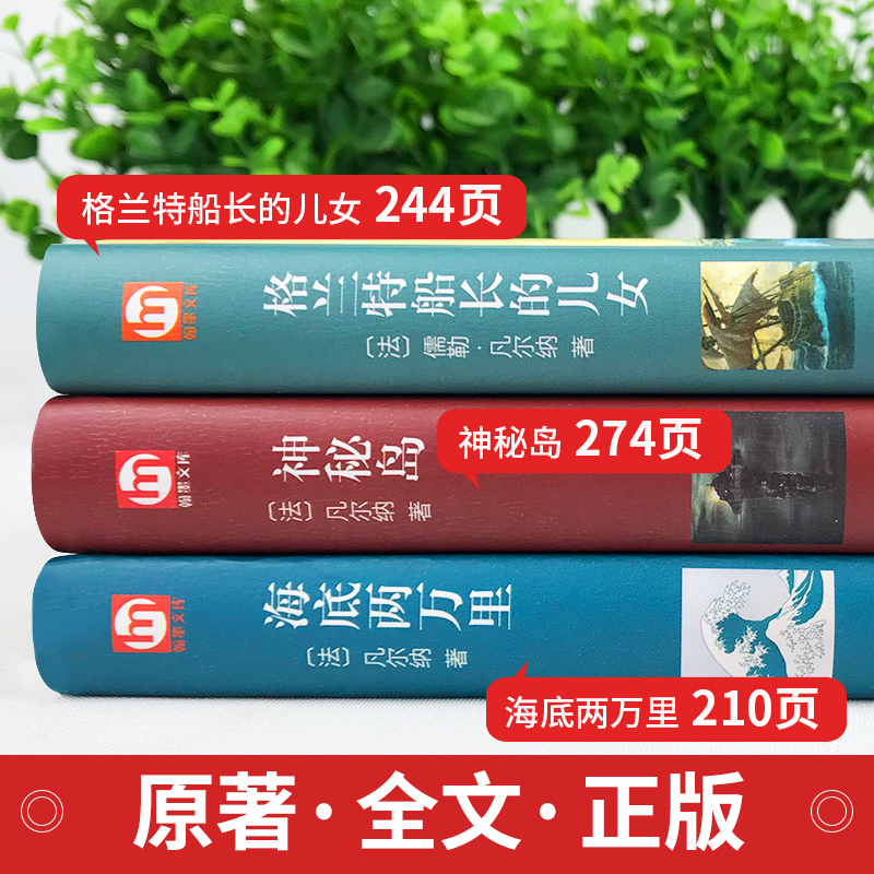 书原著七年级小学初中生阅读书籍畅销书排行榜海洋儒勒 3册凡尔纳科幻小说全集三部曲神秘岛格兰特船长儿女海底两万里正版 精装 版