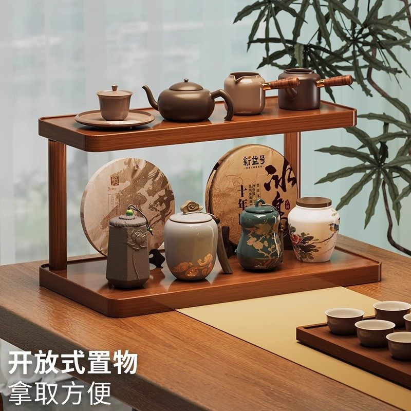 茶饼架普洱茶架子实木茶饼盒防尘透明茶叶摆放展示架茶具配件收纳
