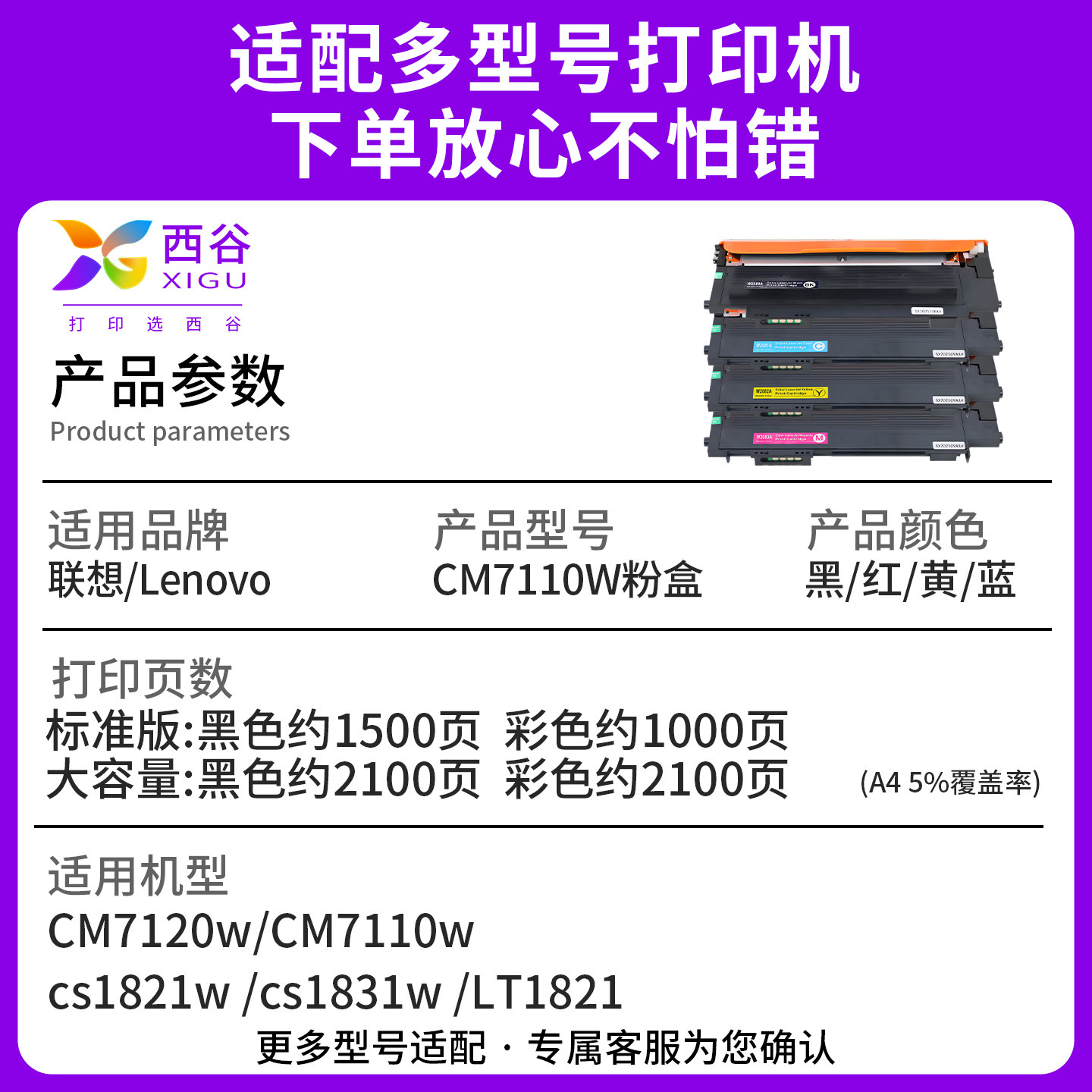 彩色加粉 LT1821激光硒鼓碳粉 含芯片顺丰速发 cs1831w 西谷适用于联想CM7110w粉盒CM7120w打印机墨盒cs1821w