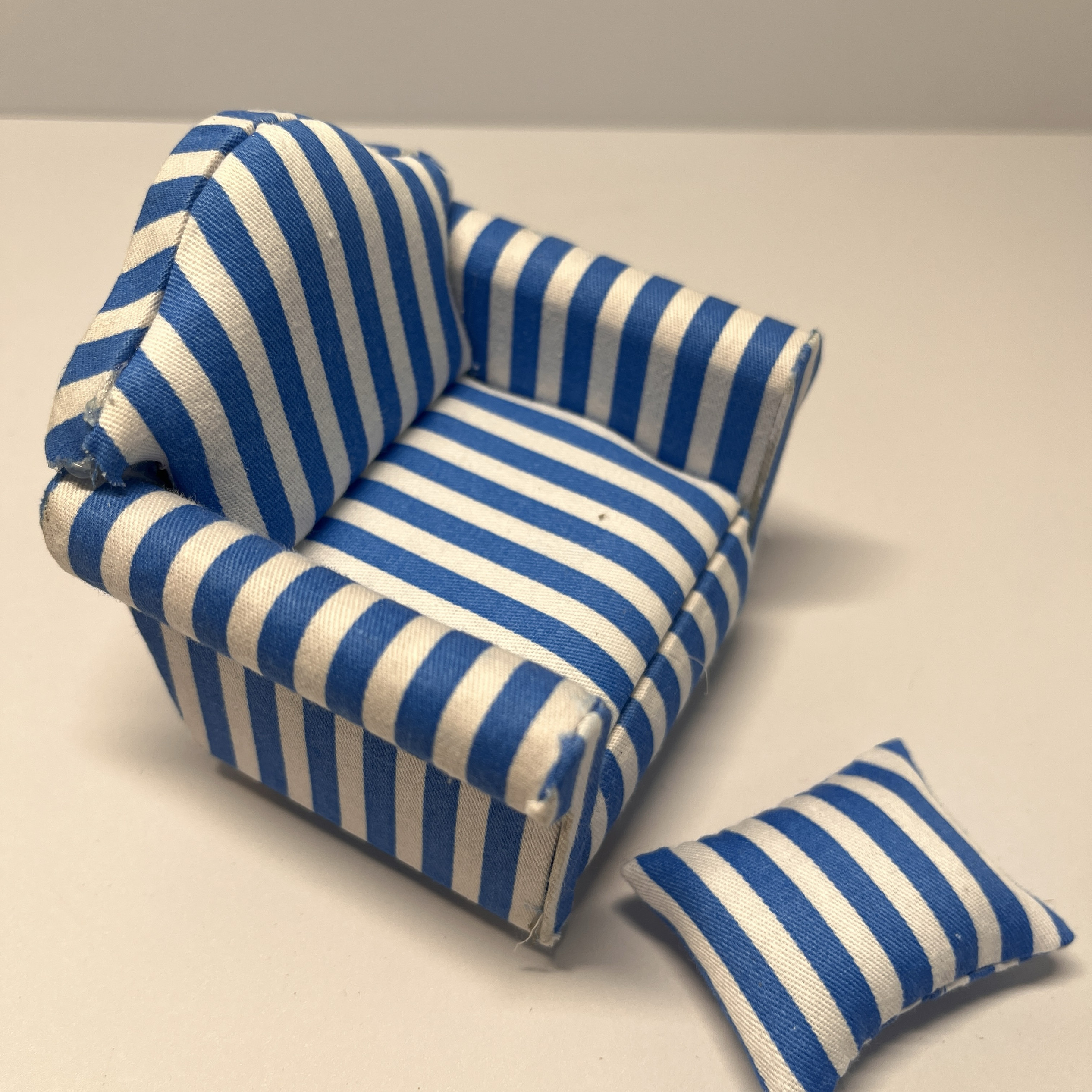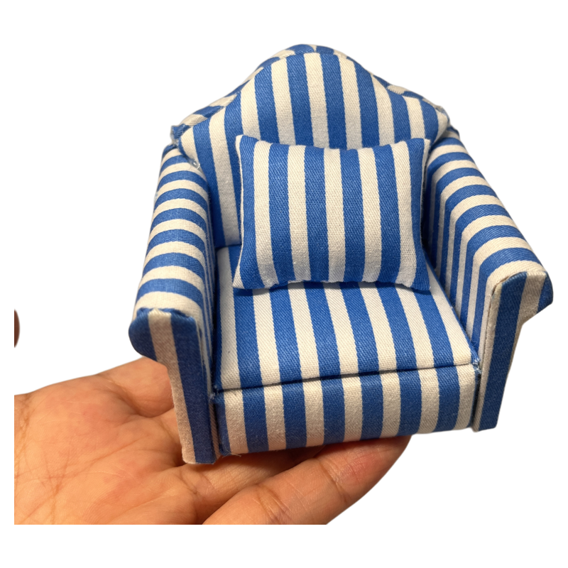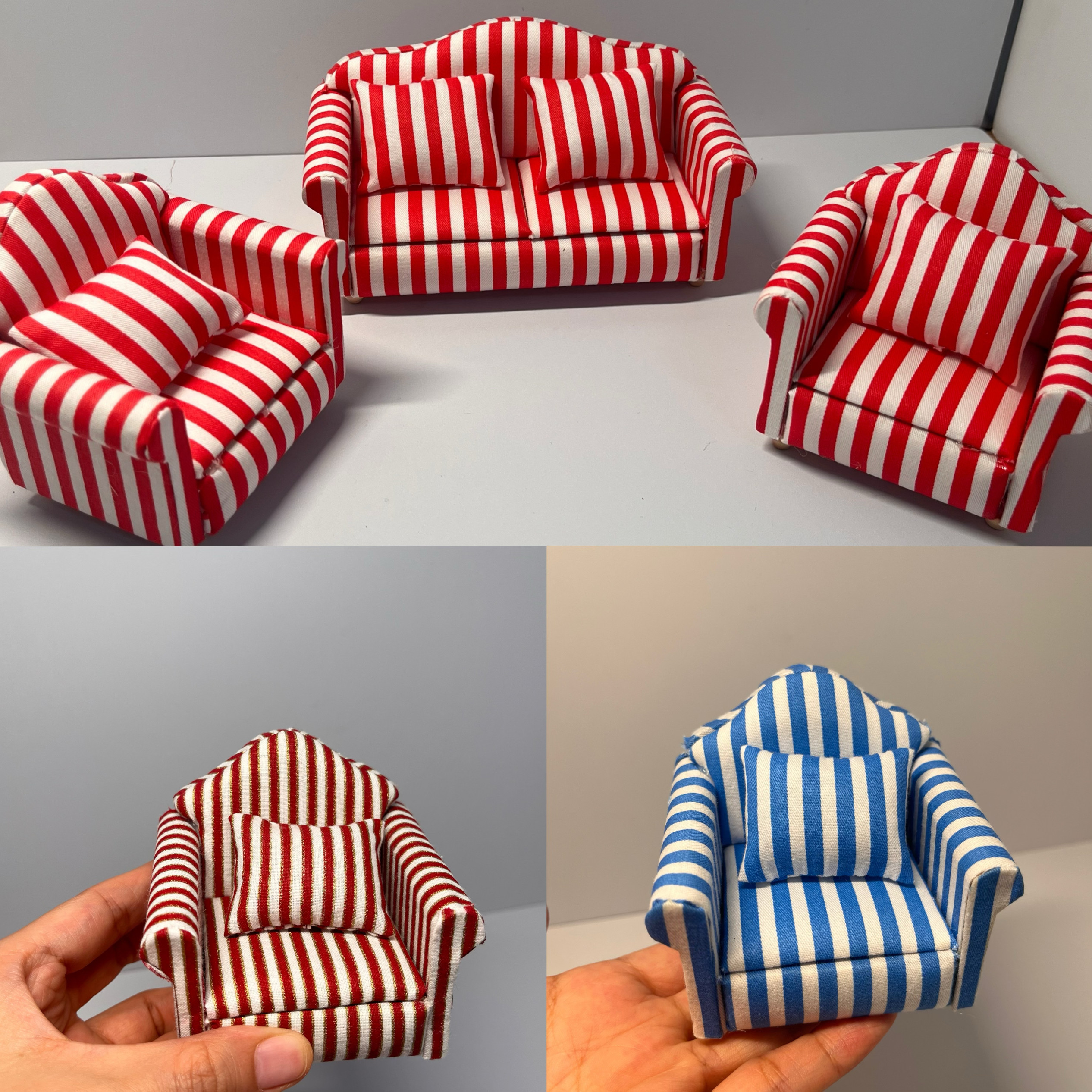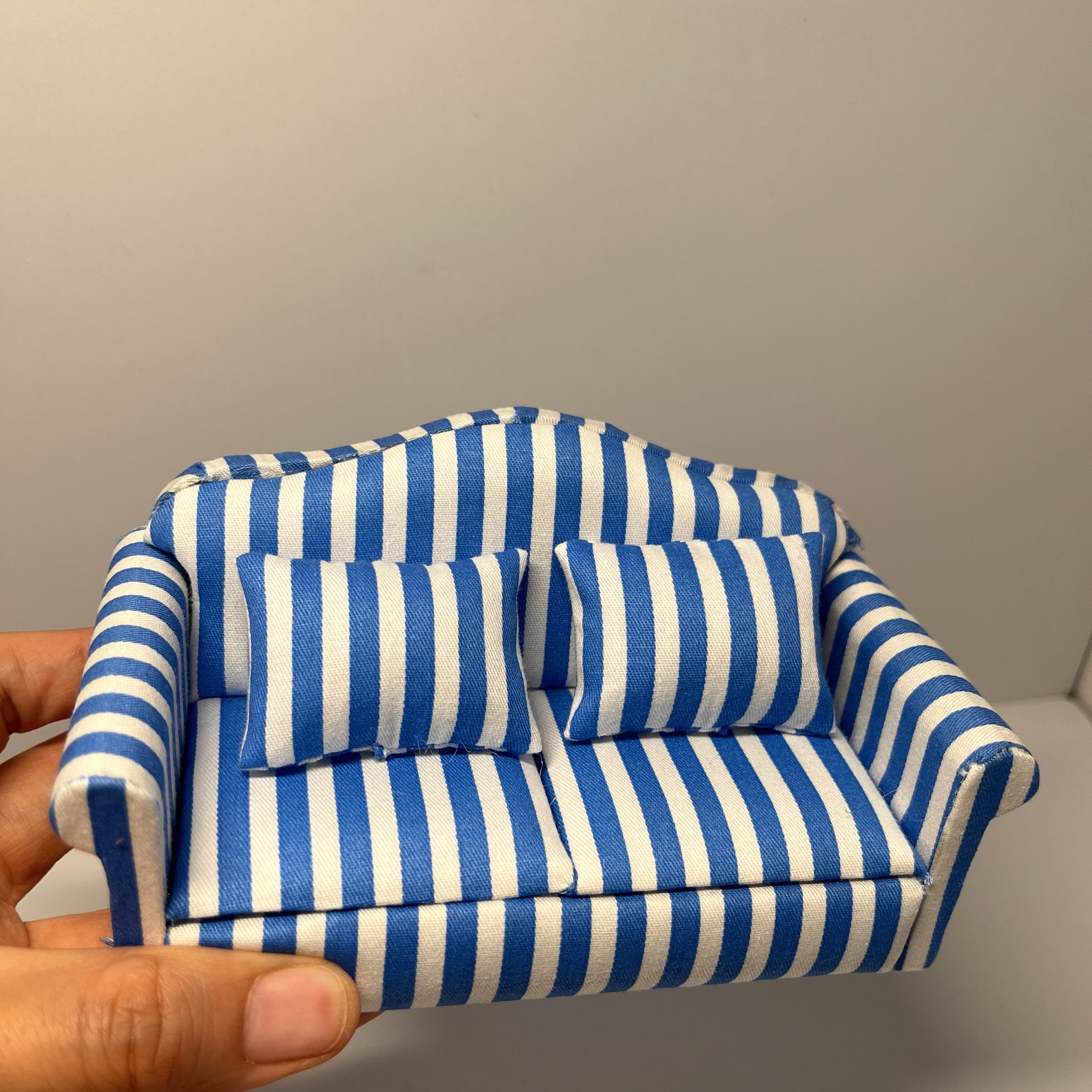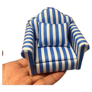 12分娃娃屋场景配件条纹布艺双人单人沙发模型微缩玩具摆件小道具