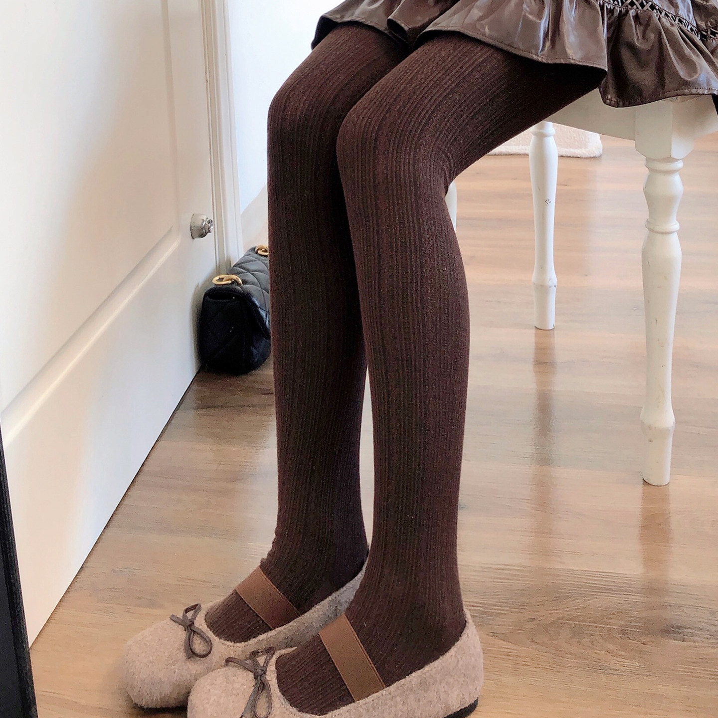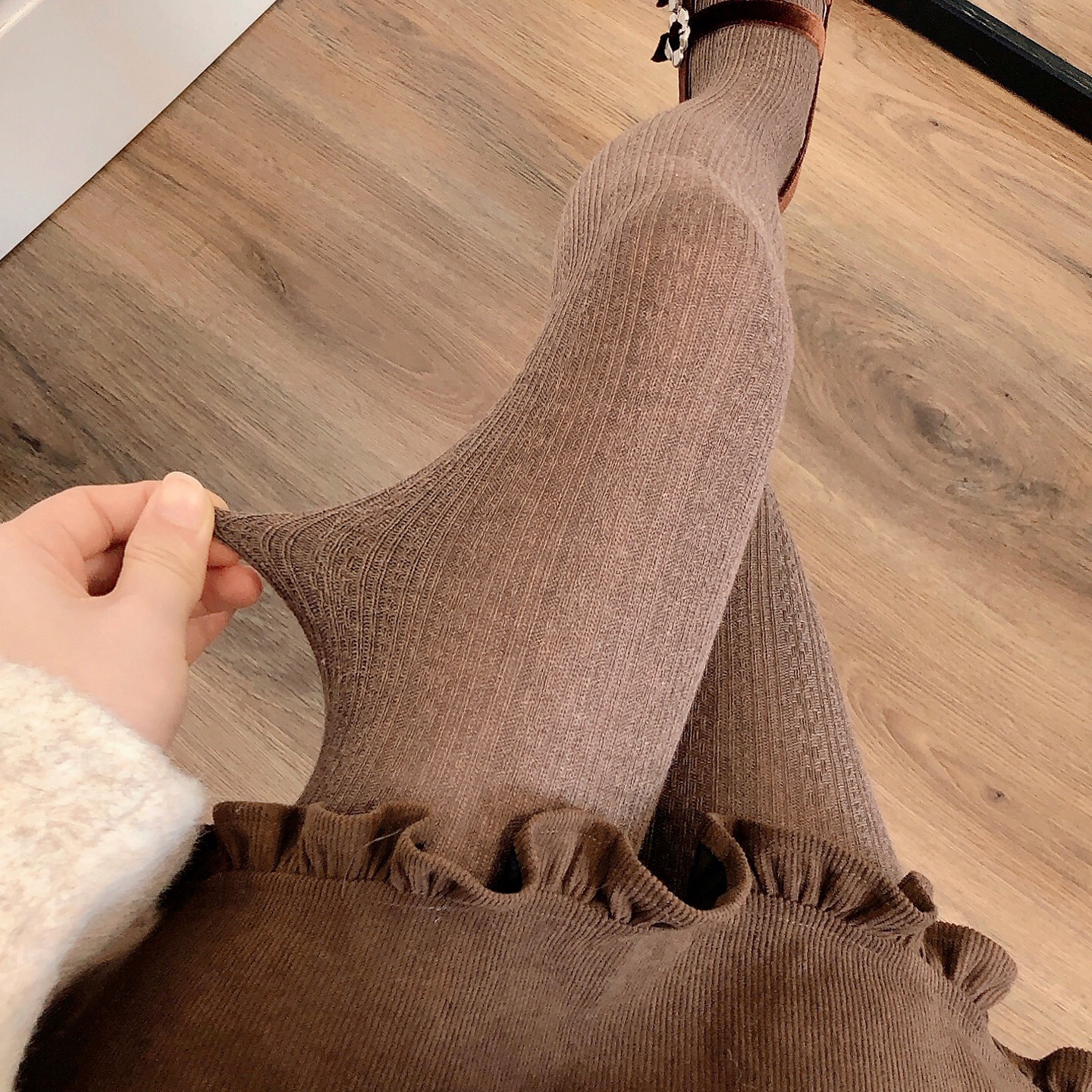 袜显瘦麻花纹踩脚袜 女外穿保暖烟灰色连裤 秋冬款 加厚咖啡色打底裤