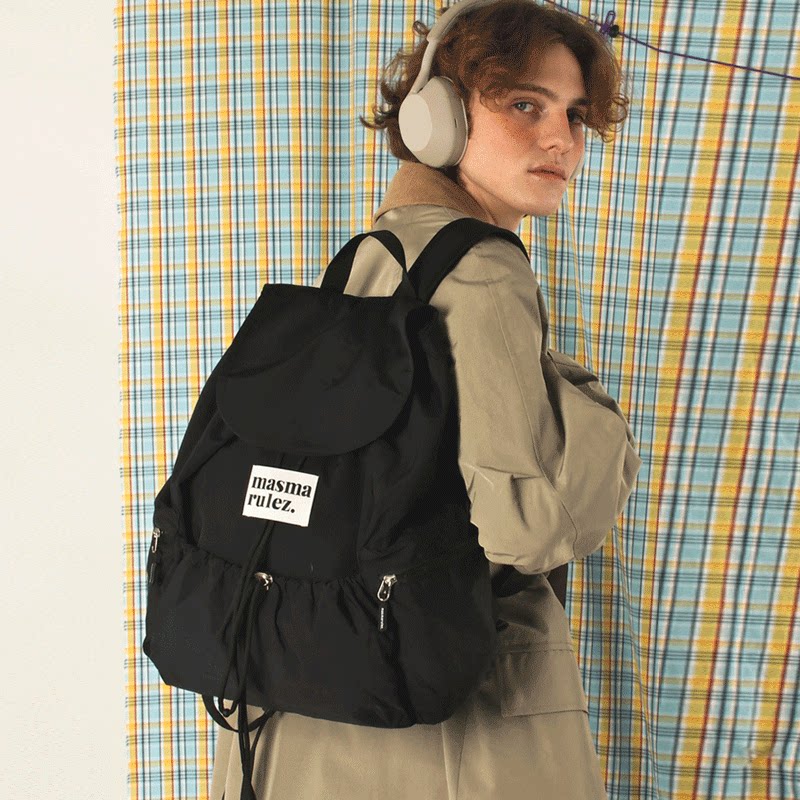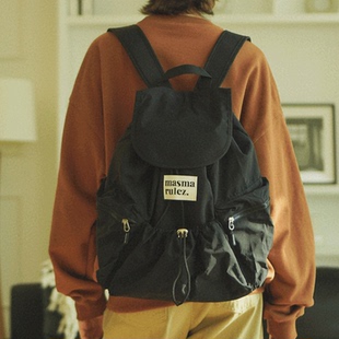 Masmarulez韩系翻盖束口双肩包女通勤旅游出行背包大容量学生书包