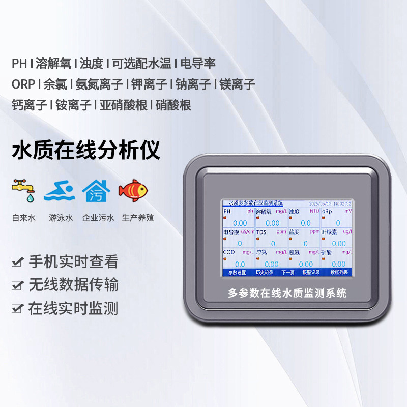 水质在线检测仪多参数工业COD余氯PH溶解氧EC氨氮监测浊度分析仪