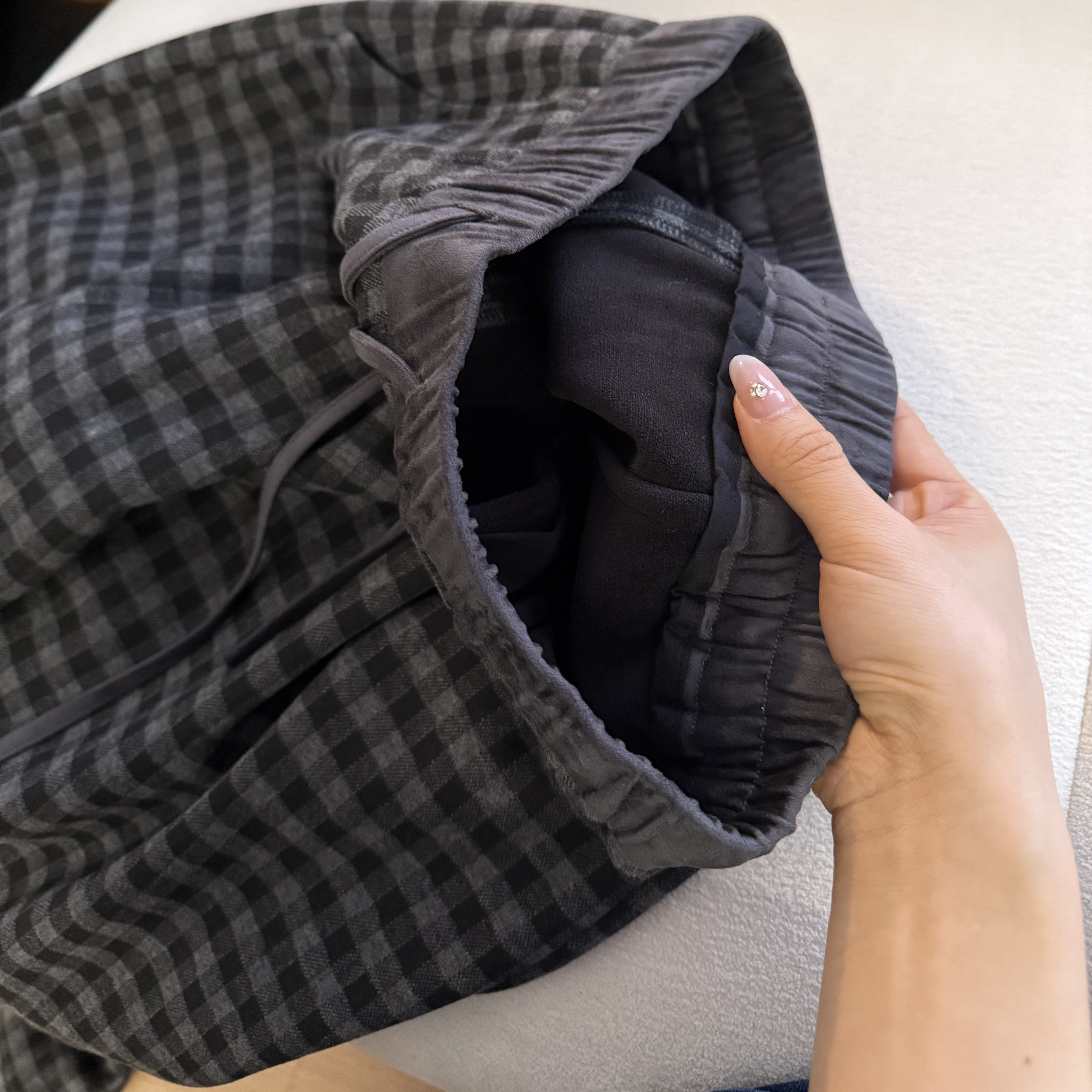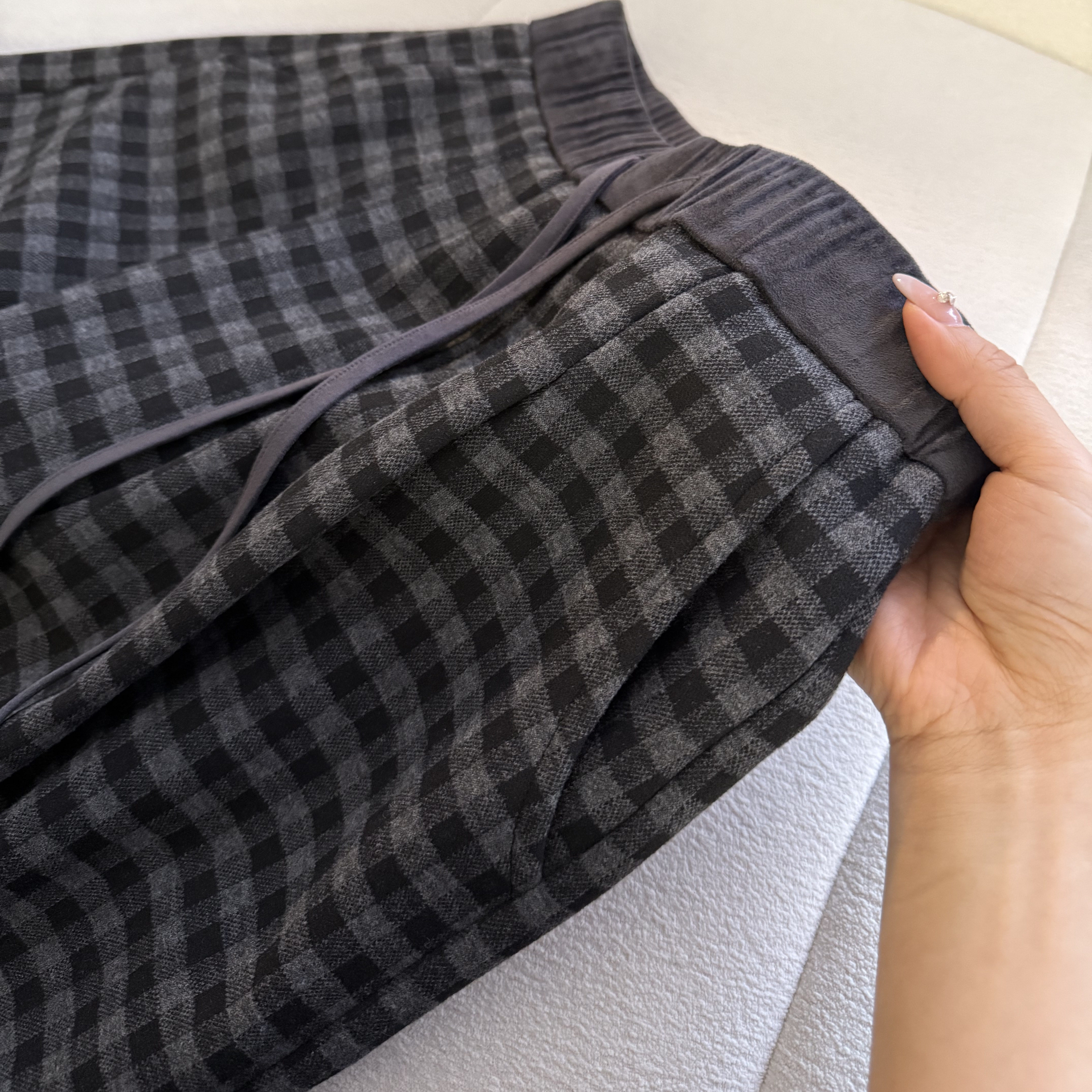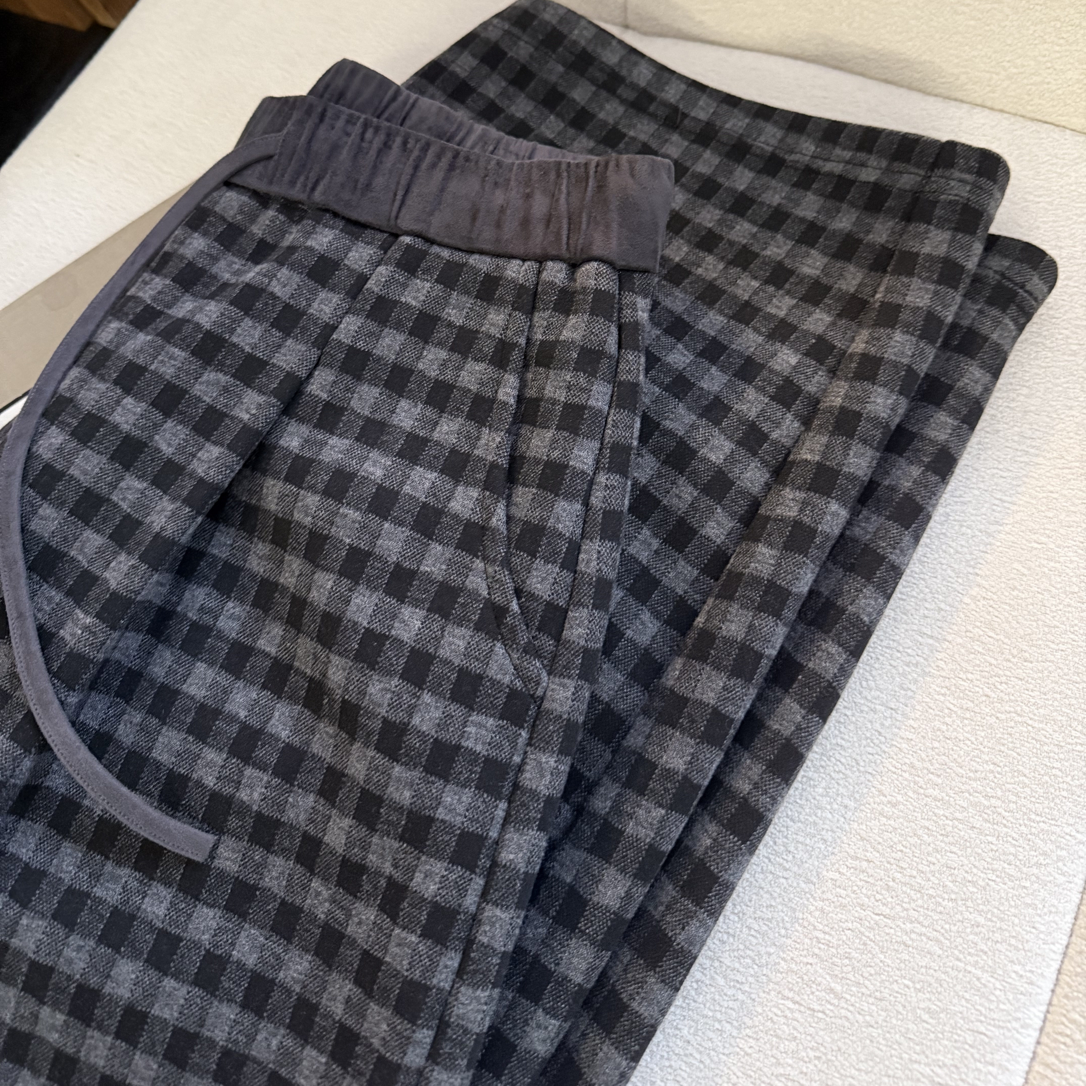 麂皮绒拼接加绒保暖复古色织呢料显瘦格纹裤 muzi 冬日松弛