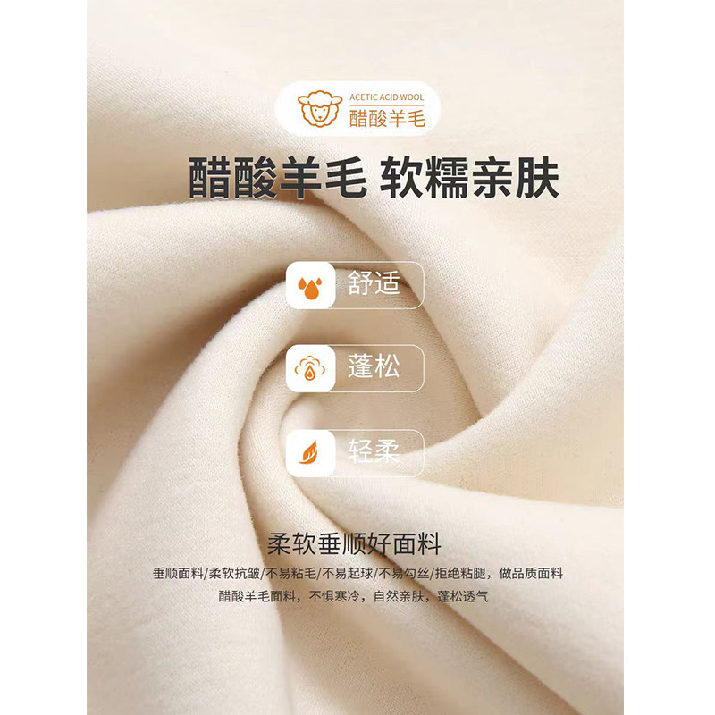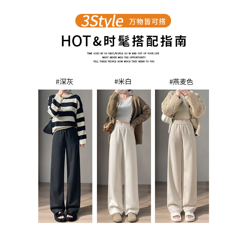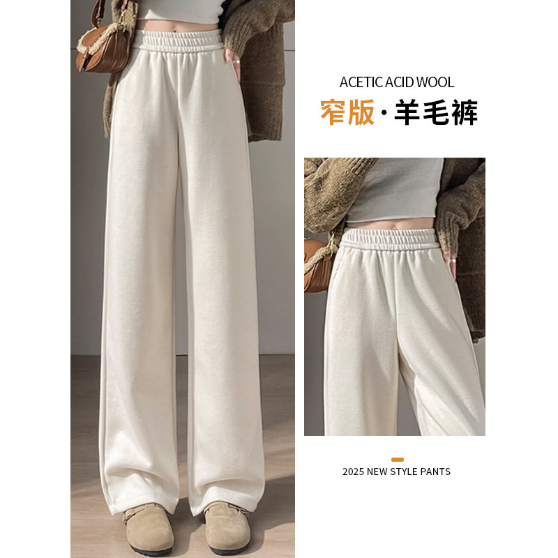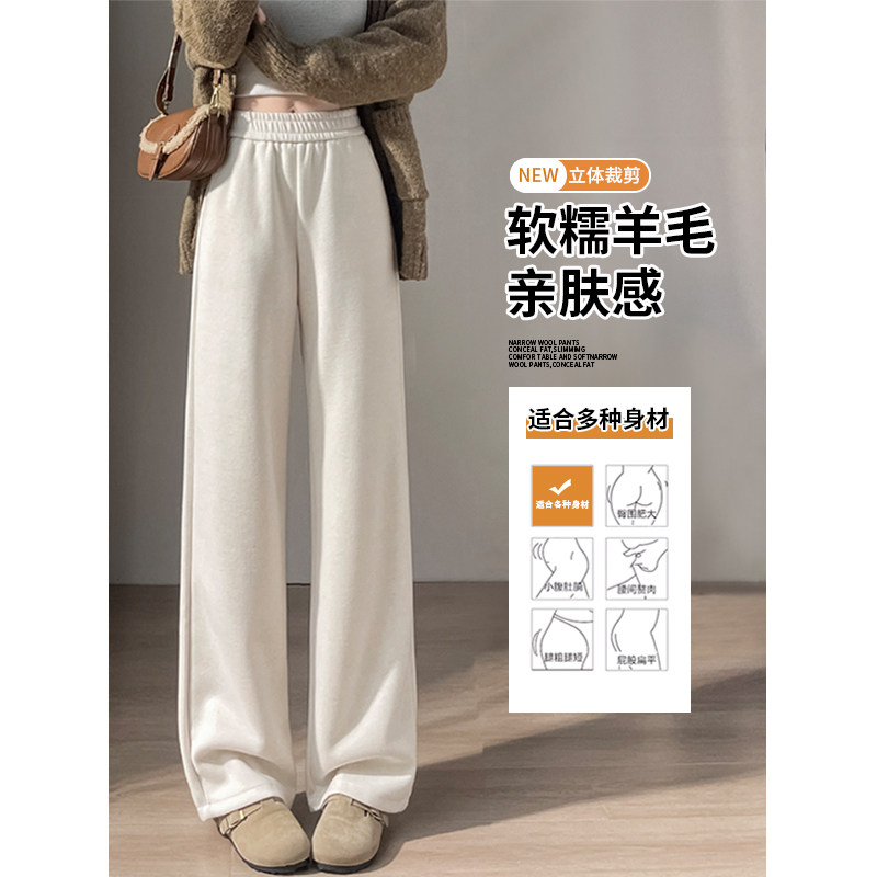 加绒加厚休闲糯米裤 白色酷酸羊毛阔腿裤 女秋冬加绒高腰垂感直筒裤