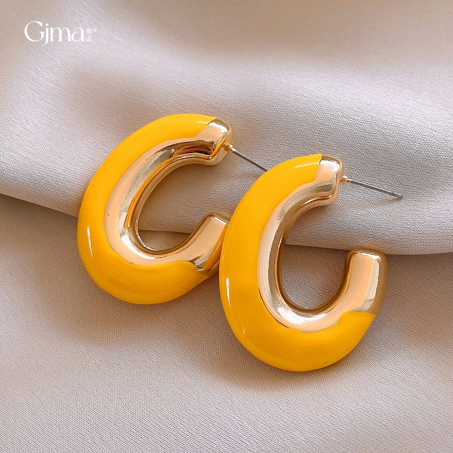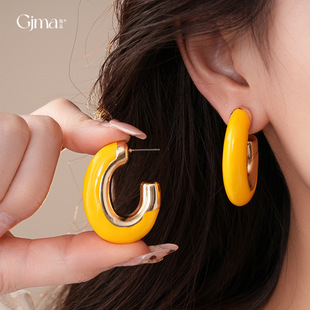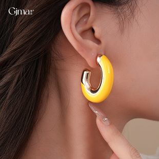 Oval Yellow Earrings Sterling Women Trendy Studs Bright