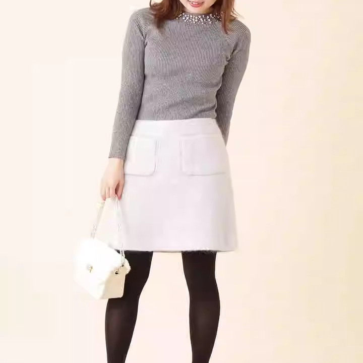 D03054日单贵牌1.2W日元 秋冬新拉链高腰含毛短裙女气质呢子半身裙