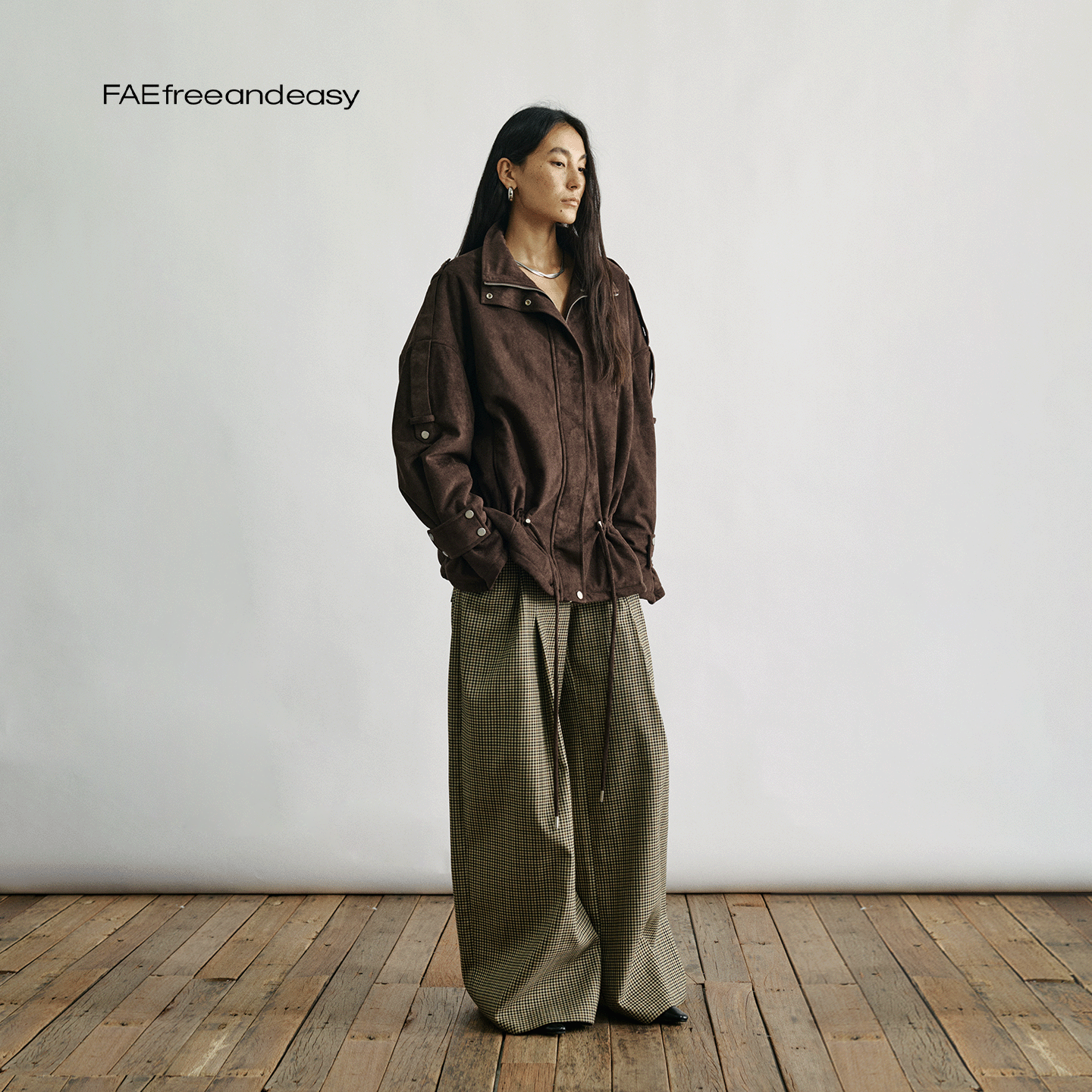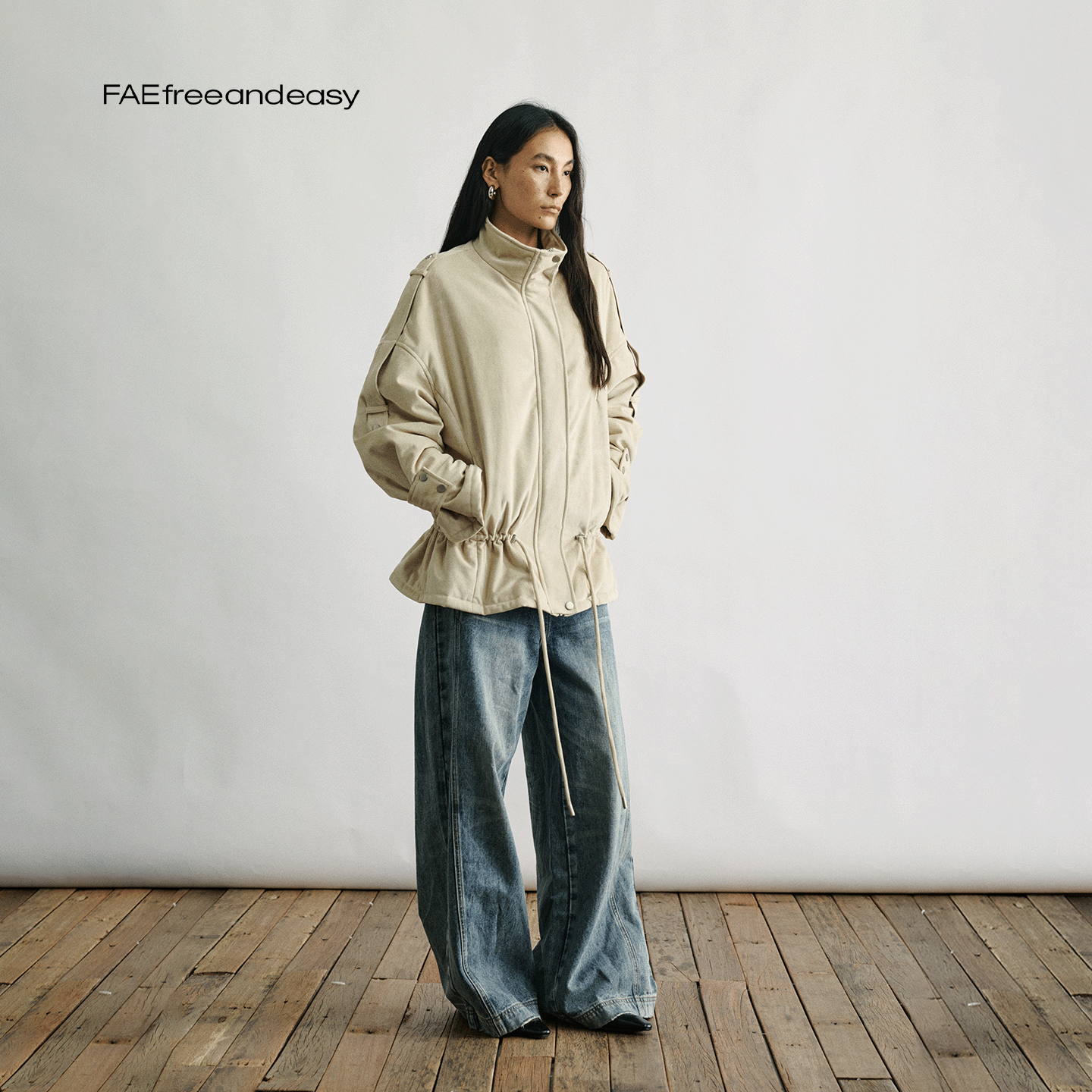 抽绳立领麂皮夹棉外套工装 无为心境 风休闲加厚夹克冬季 FAE
