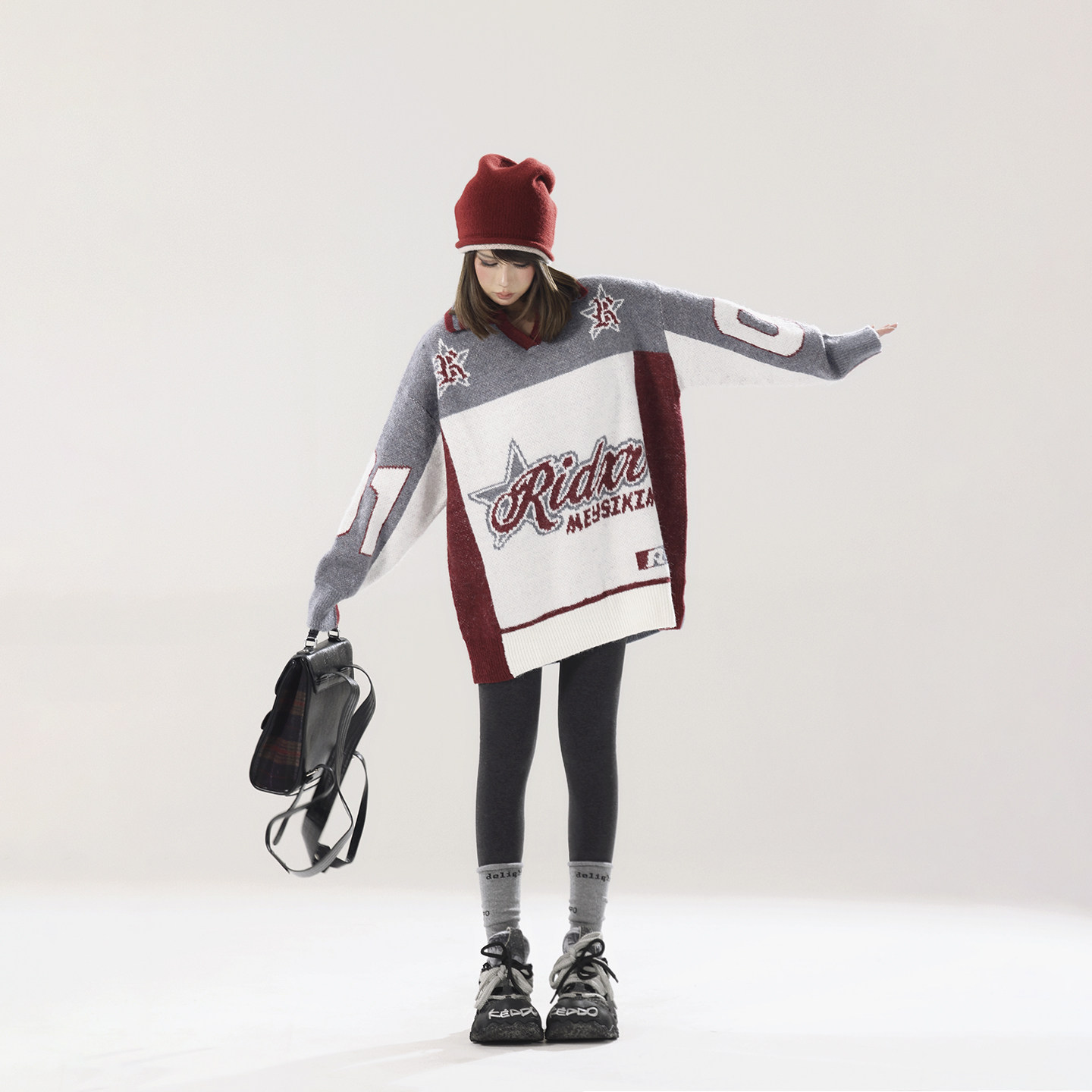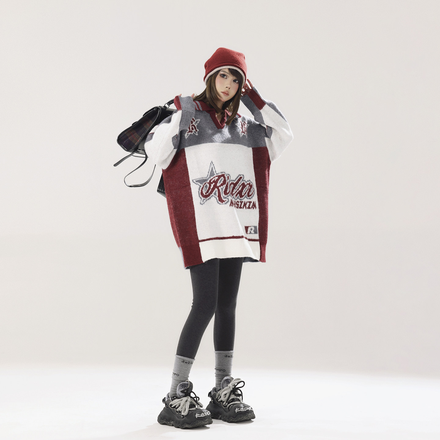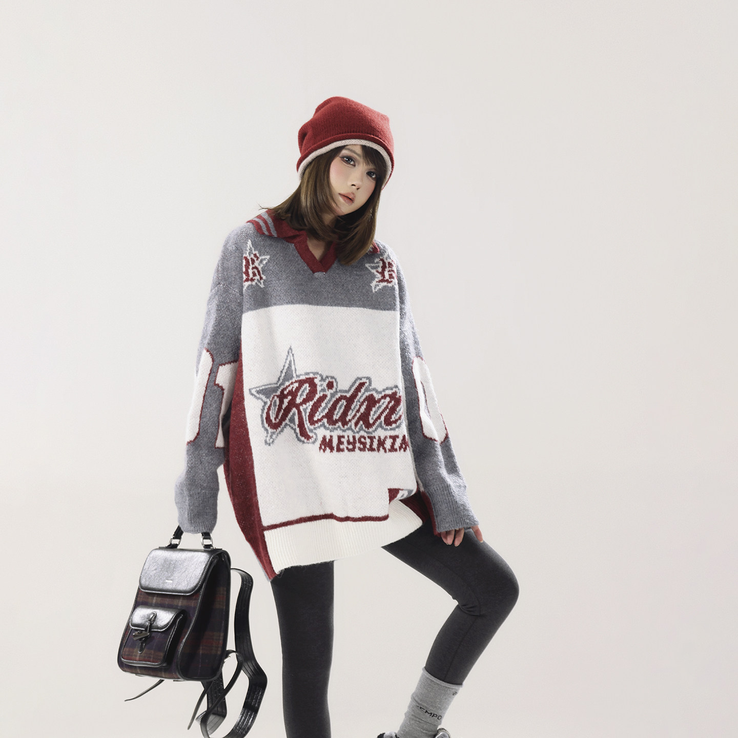 针织衫 polo领套头毛衣女春秋宽松慵懒长袖 上衣 慵懒基因 pusumede