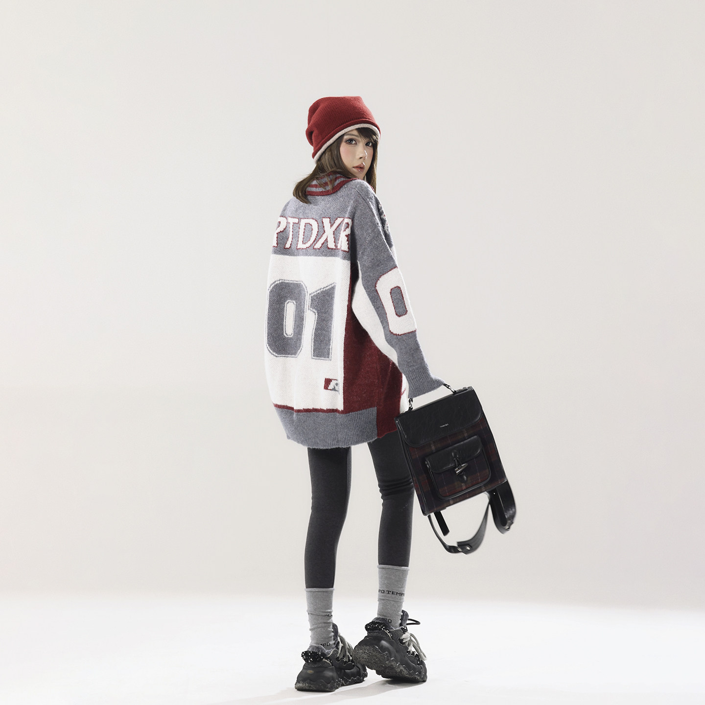 女秋冬宽松慵懒毛衣外搭长袖 polo领针织衫 上衣 简约都市 pusumede