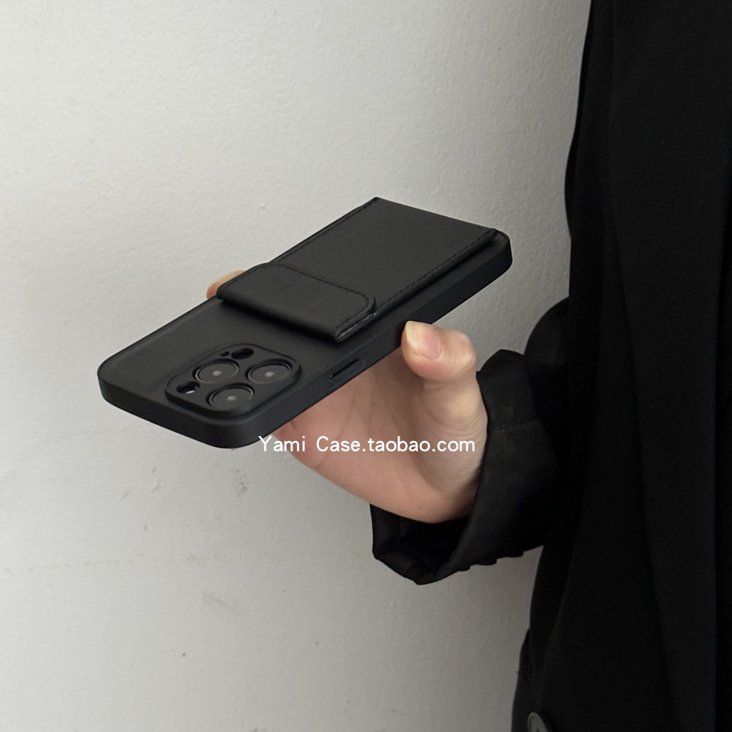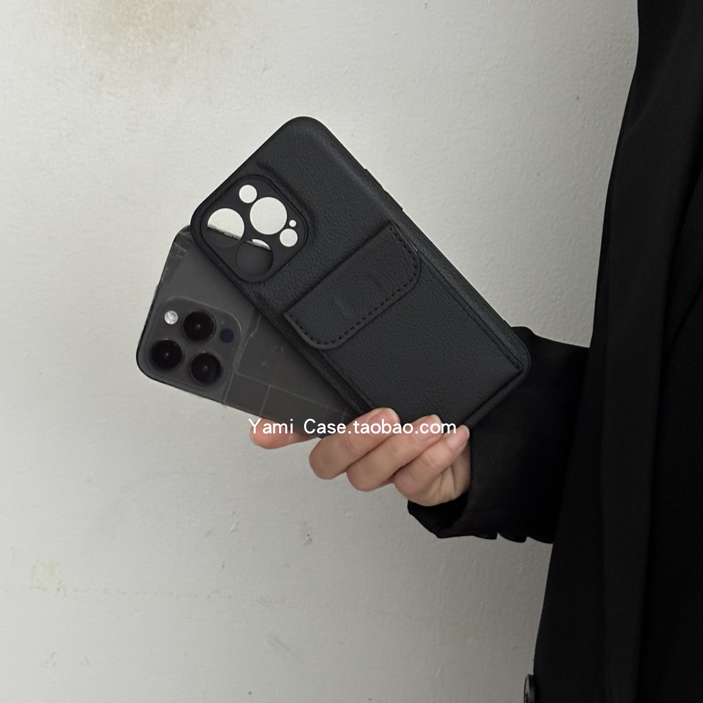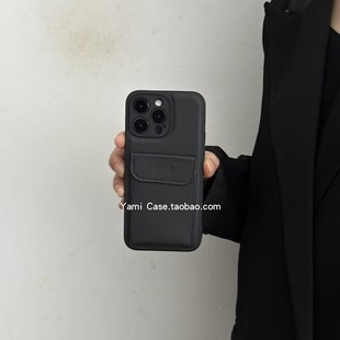 经典 简约黑色带插卡卡包一体16promax适用苹果17promax手机壳iphone13贴皮零钱包15pro防摔17全包14保护套