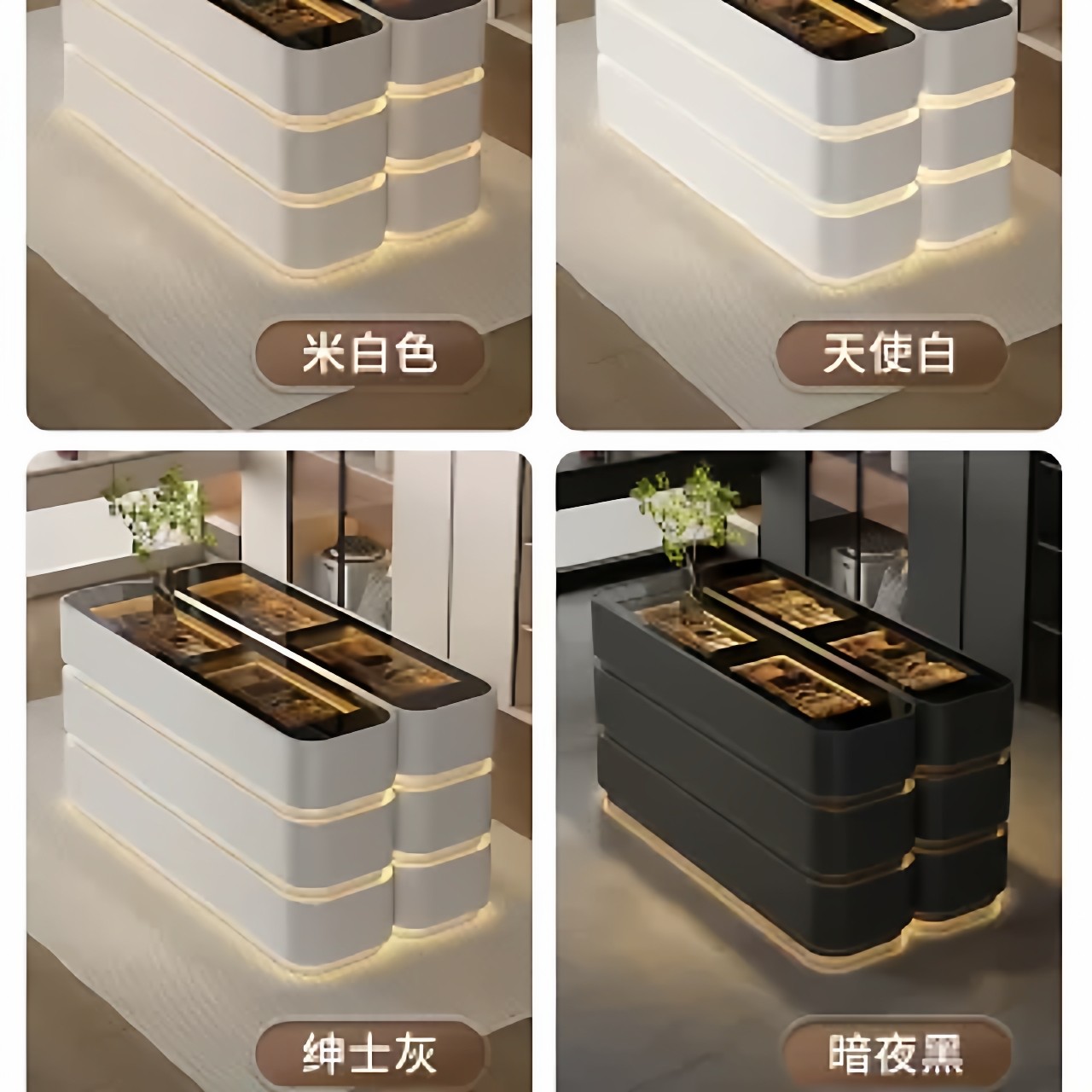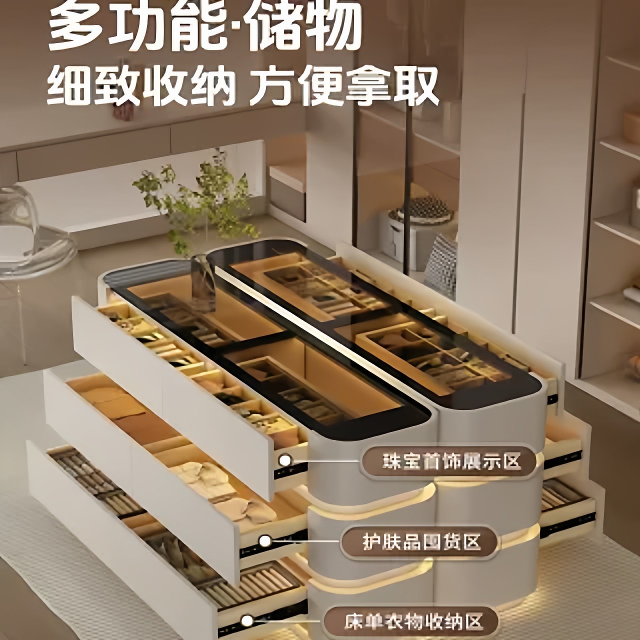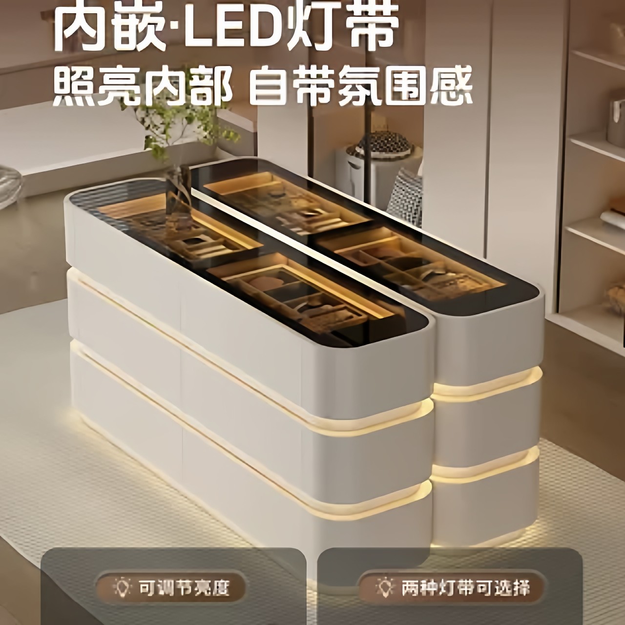 奶油风首饰柜家用落地首饰收纳斗柜灯带多宝格衣帽间中岛柜装 饰柜