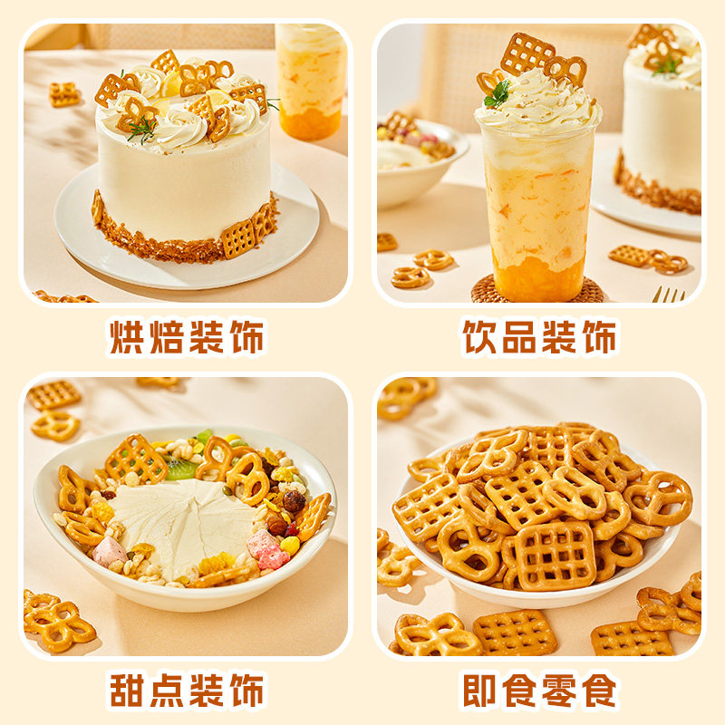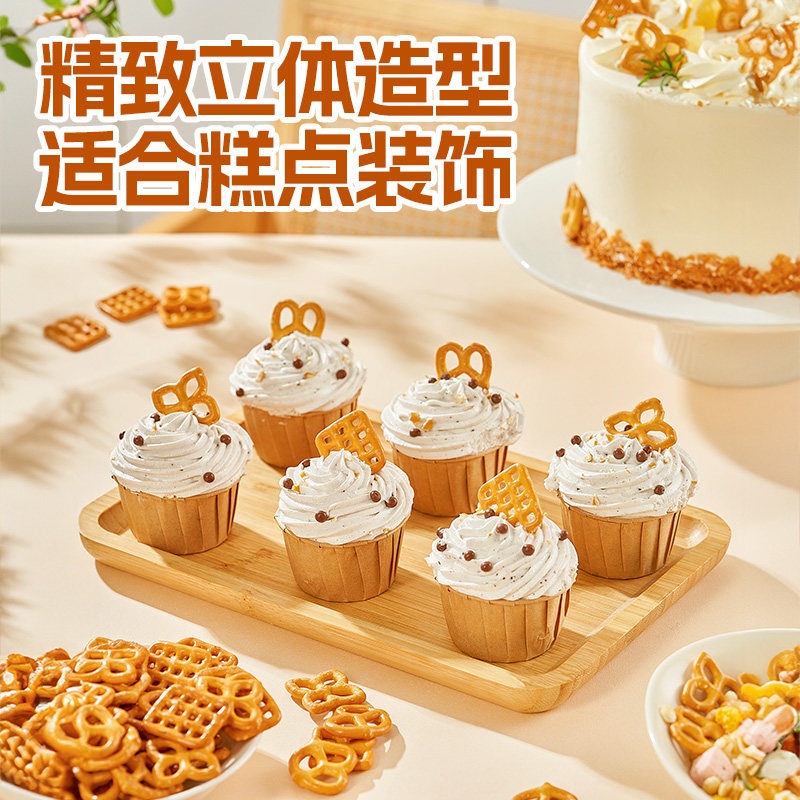展艺海盐味碱水饼干网红蝴蝶结网格结圈烘焙蛋糕装 饰即食蛋糕摆件