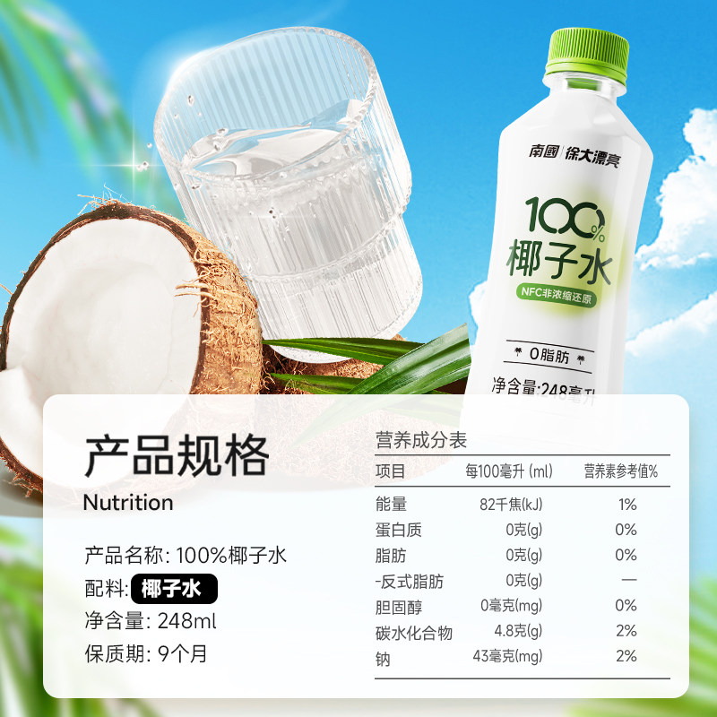 南国食品100%椰子水海南特产椰子汁电解质孕妇饮料 聚会饮料