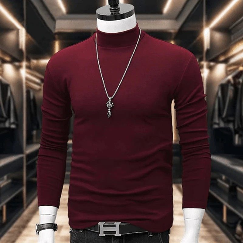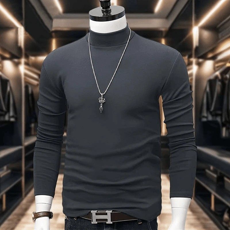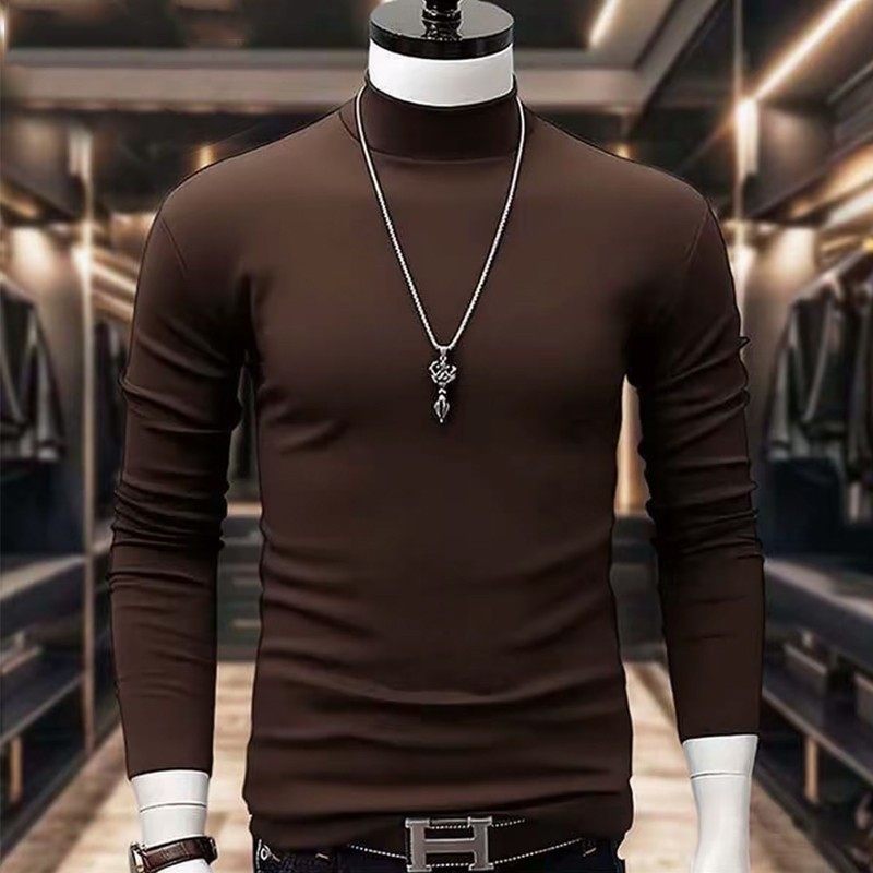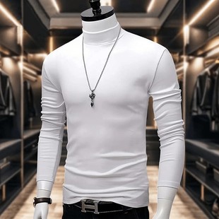 秋冬男士 修身 打底衫 上衣男韩版 双面德绒T恤ins 半高领长袖 B11男装