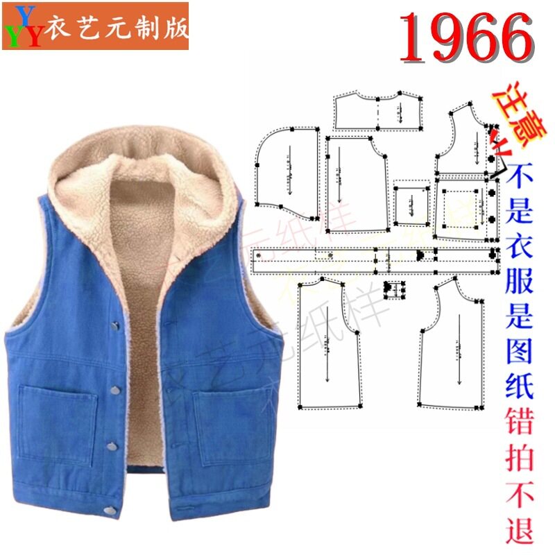 1966服装 裁剪图纸样板大全牛仔外套女羊羔绒马甲秋冬加厚马夹女装