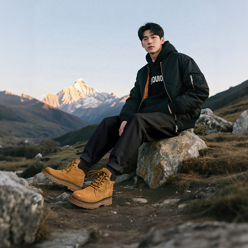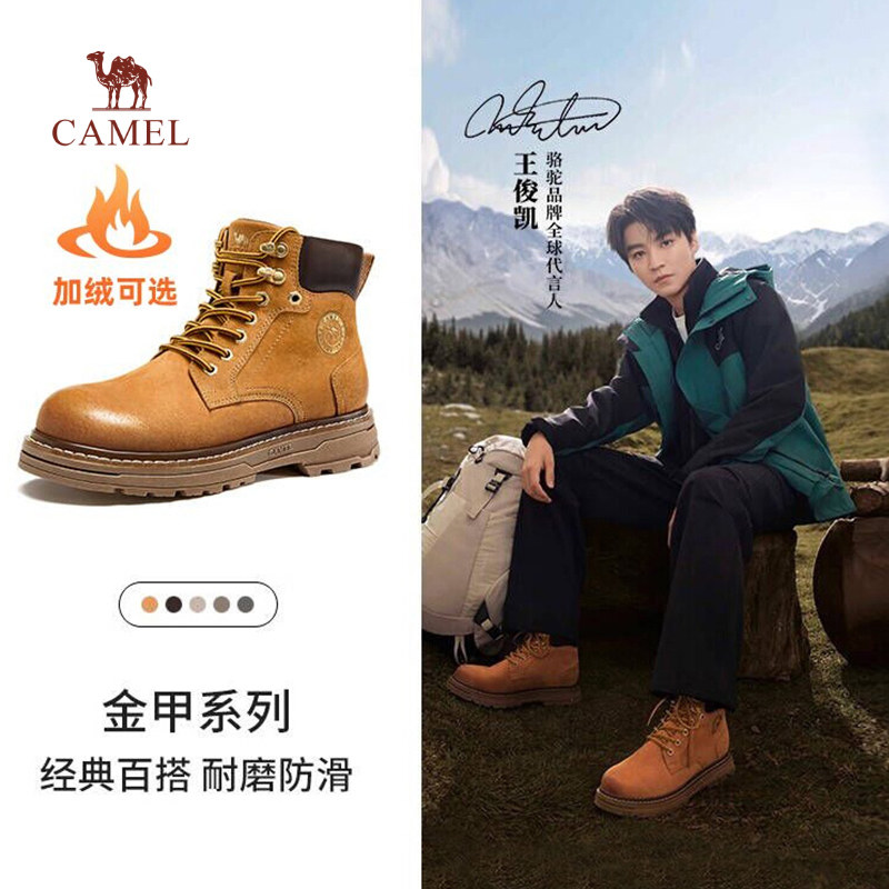 加绒户外大黄靴高帮男鞋 骆驼马丁靴2025秋新款 王俊凯同款