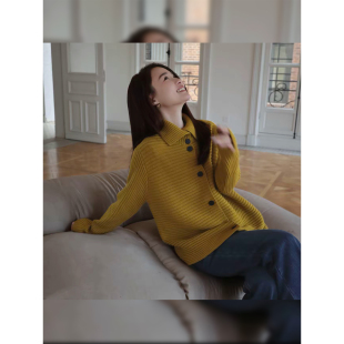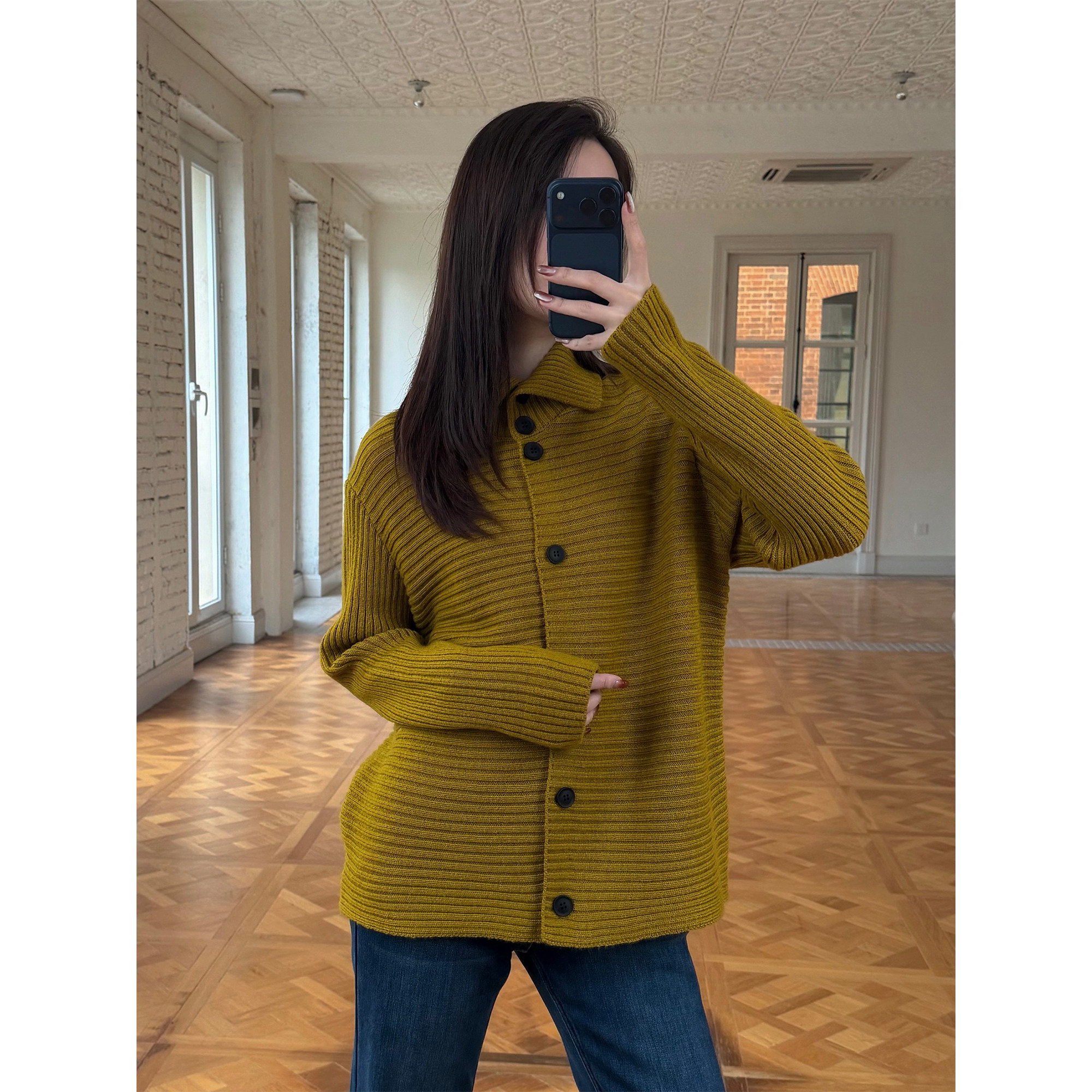 绵羊毛慵懒风宽松针织开衫 邱莹莹 坑条毛衫 AOMI HELA