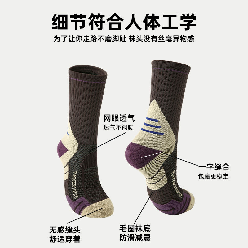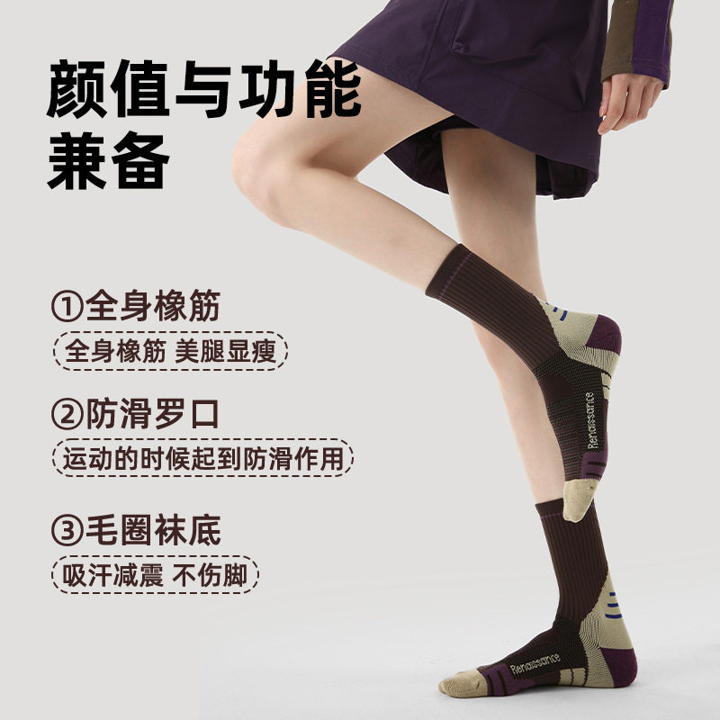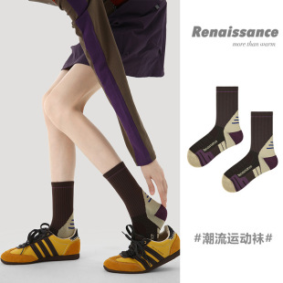 Renaissance运动袜女士撞色潮袜吸汗防臭透气长筒袜毛巾底跑步袜