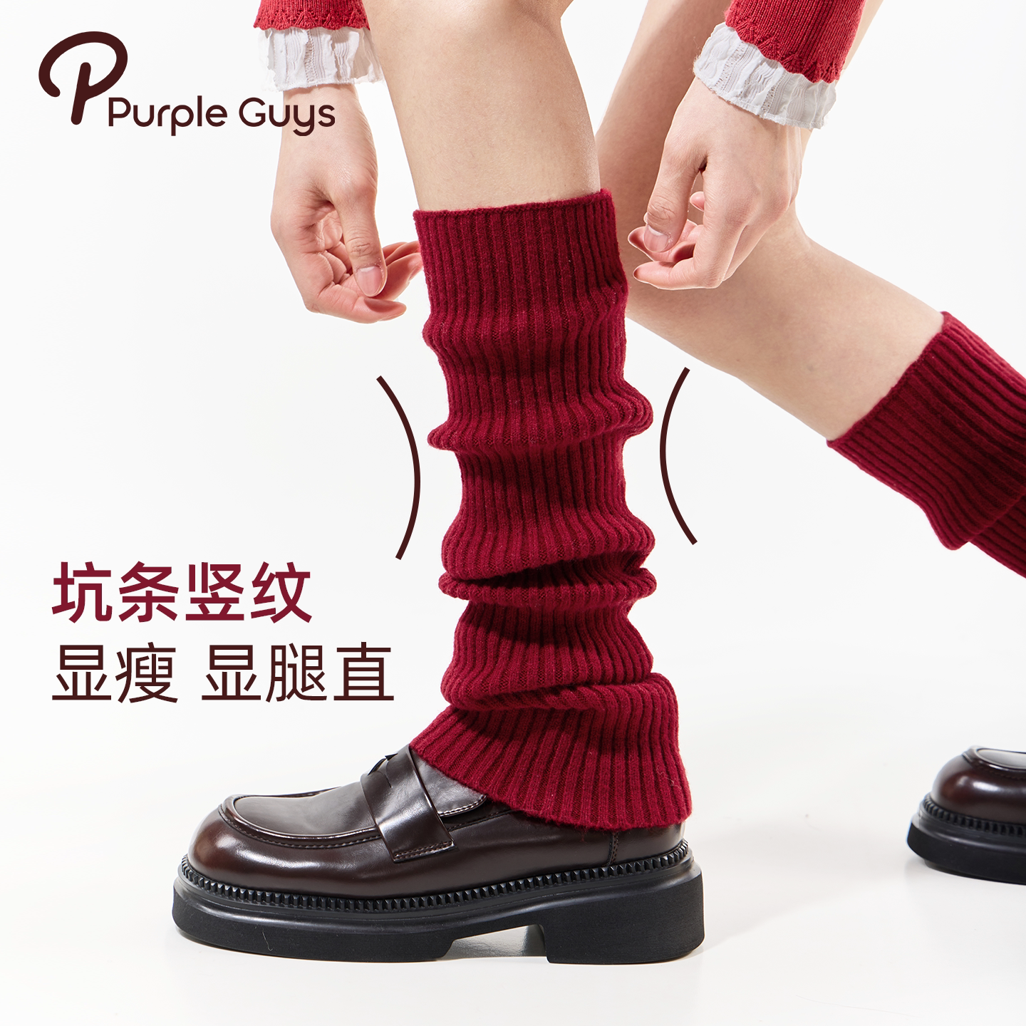 purpleguys红色堆堆袜套女2025新款 冬加厚保暖羊绒复古羊毛小腿套