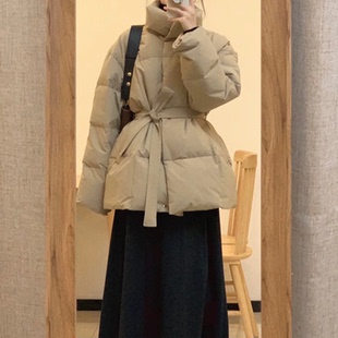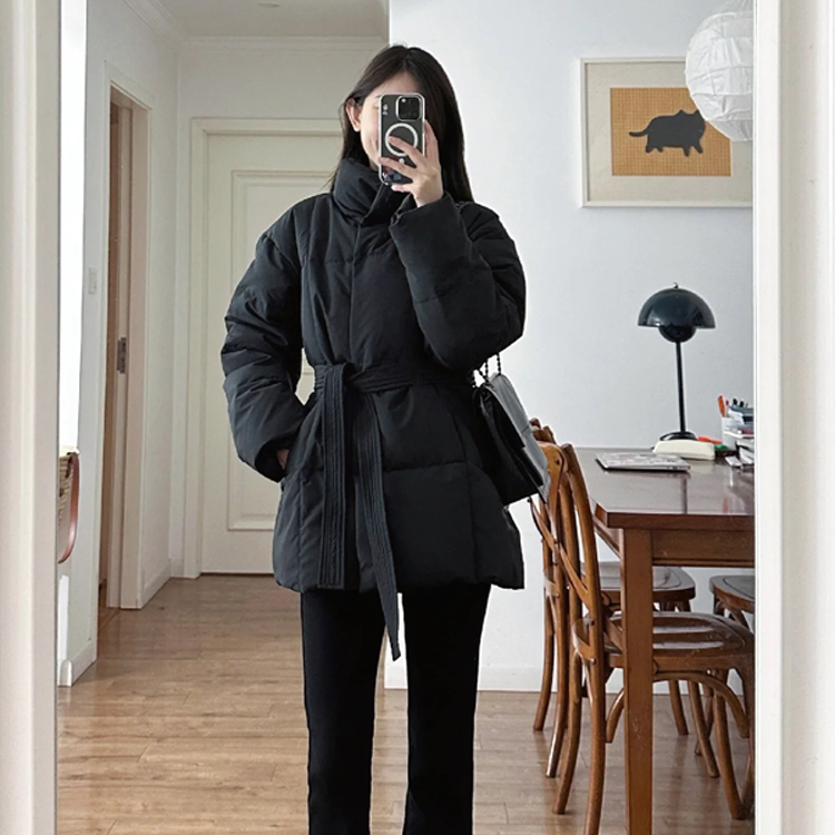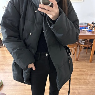 小个子棉衣 韩版 网图高级感收腰系带黑色棉服外套女2025冬季 新款