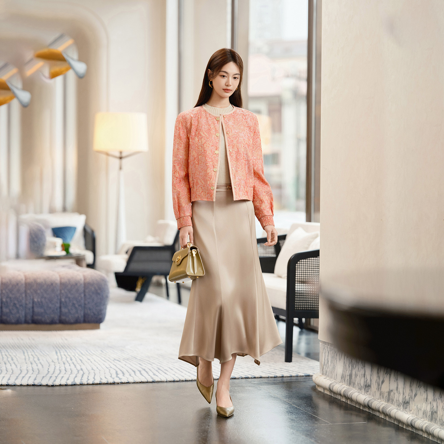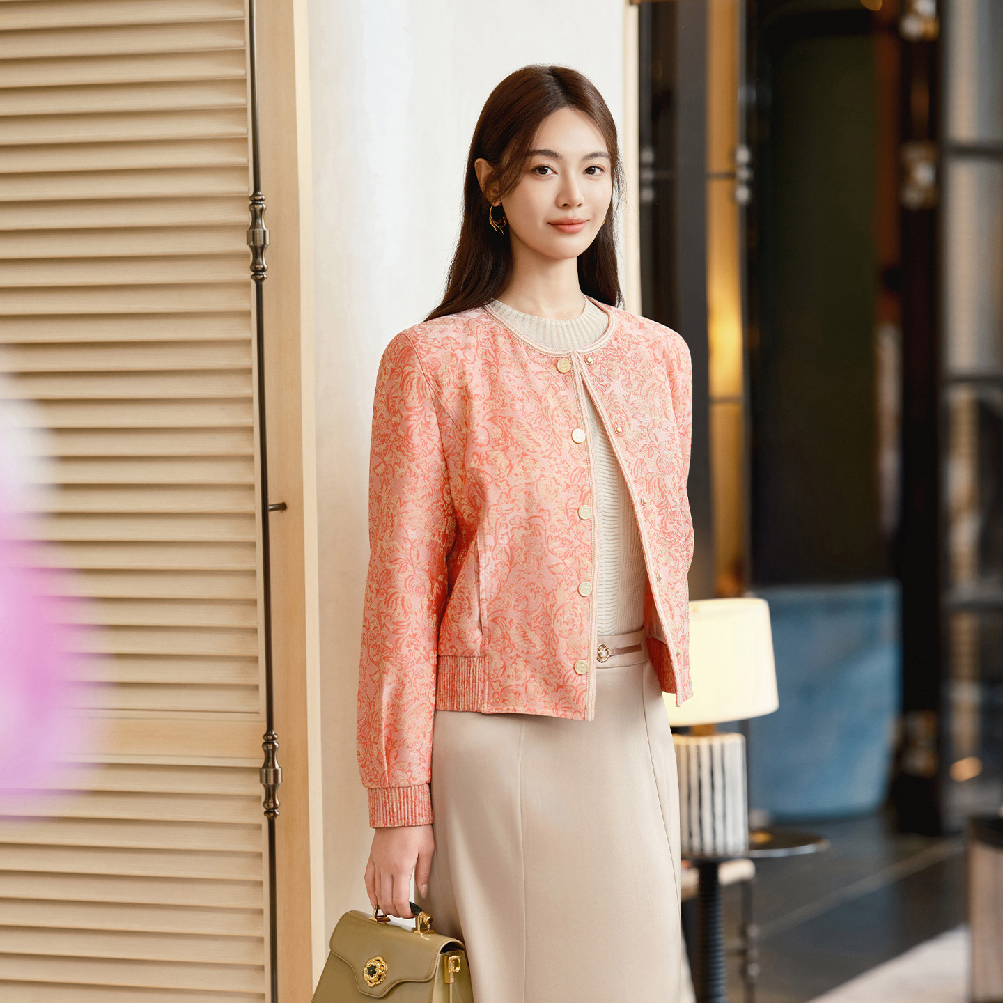 新款 EP雅莹高端系列 2025冬装 棉服外套 M102A 国风红色桑蚕丝短款