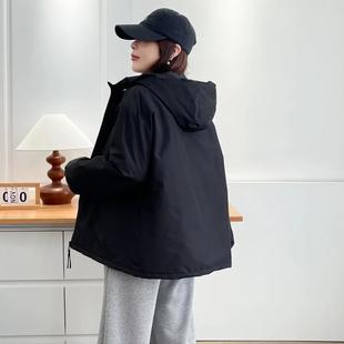 工装 复古夹棉加厚棉服女秋冬新款 派克服外套潮 胖mm美式 300斤大码