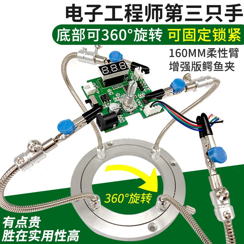 万向金属三爪焊接固定夹具手机维修夹尾插航空插头锡焊辅助工作台