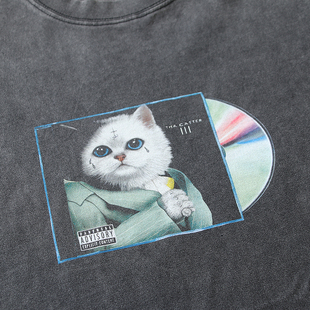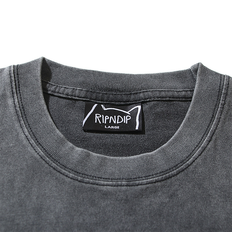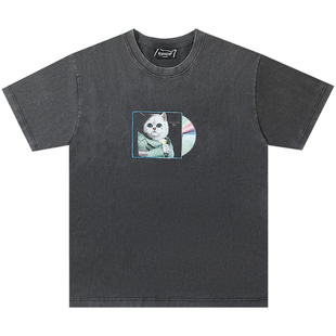 美国潮牌RIPNDIP中指贱猫纯棉短袖 T恤光碟猫水洗做旧男女情侣款